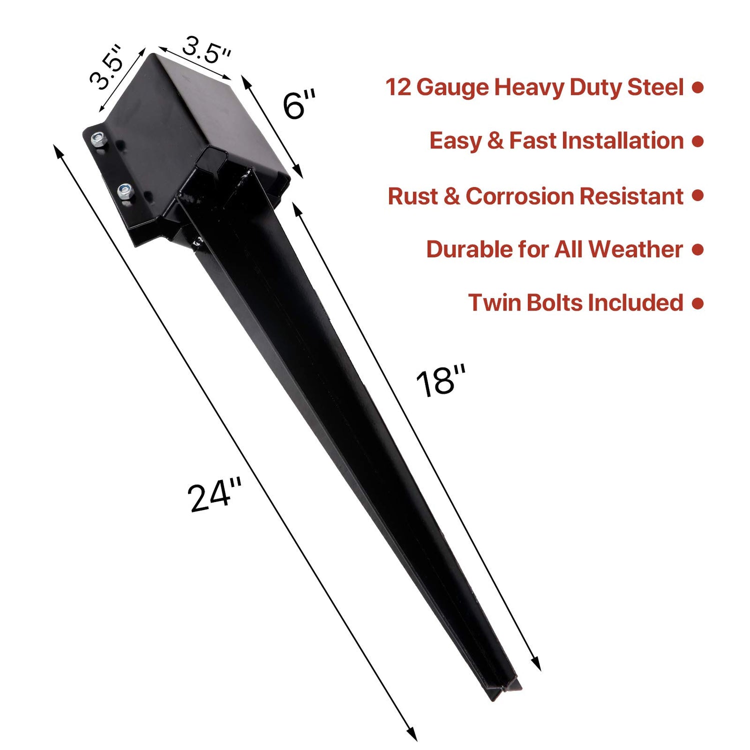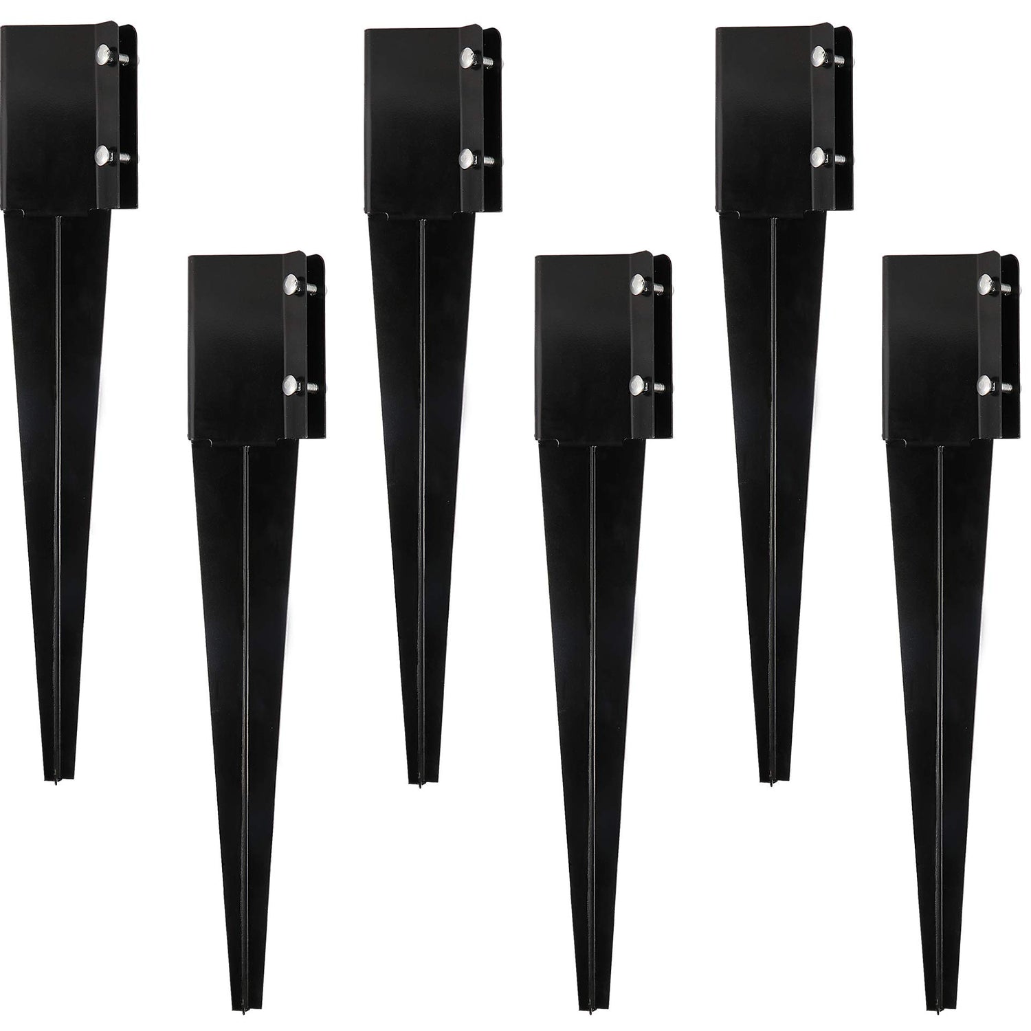Sekcen 6 Pcs Fence Post Anchor Ground Spike 4x4 Metal Post Stake 24 Inch for Mailbox Deck Railing Black