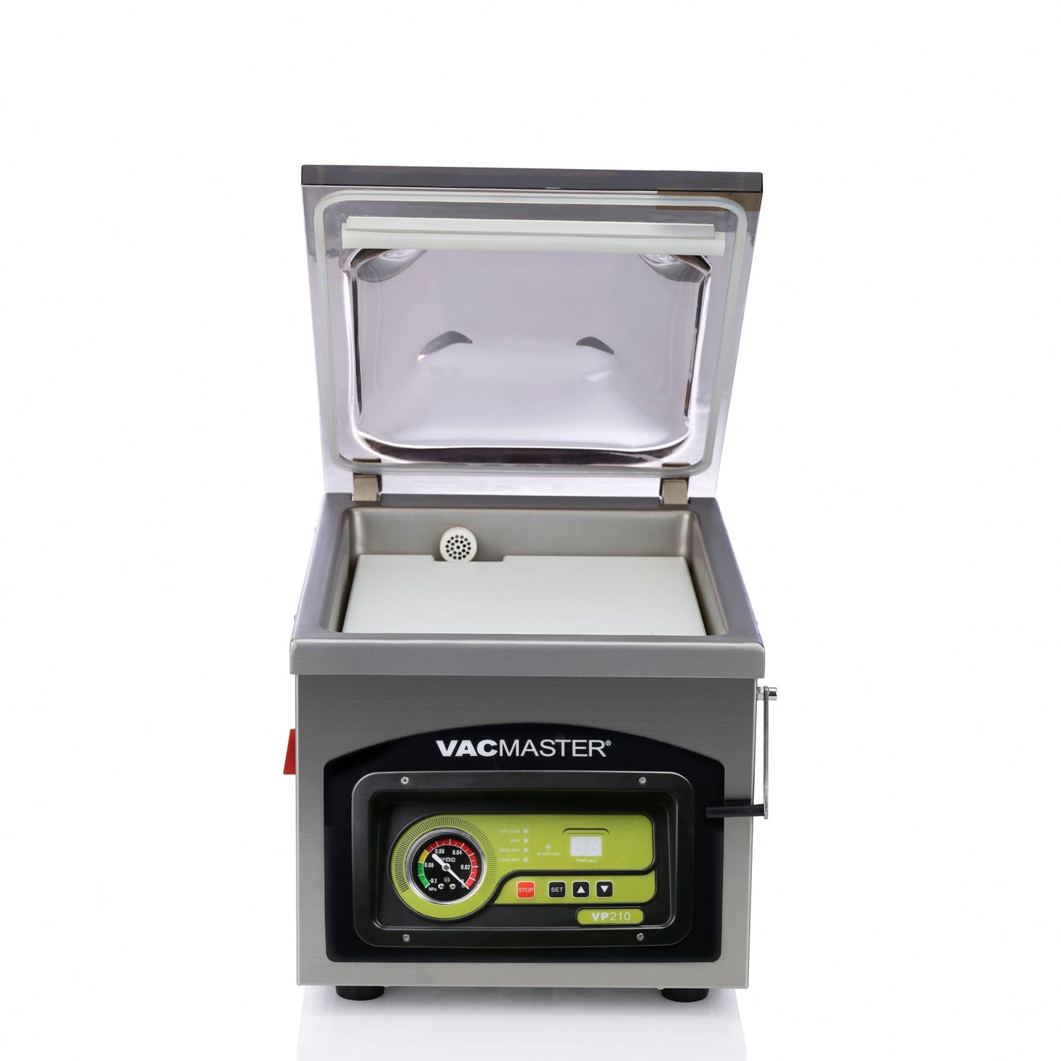 - VacMaster VP210 Specifications - Overall Dimensions (WxDxH): 14” x 20” x 15” | Chamber Size (WxDxH): 11.25” x 15.25” x 5” | Seal Bar Size 10.25” | Maximum Bag Size 10” x 13 | Pump: Maintenance-Free Air Pump |Weight: 72 lbs.