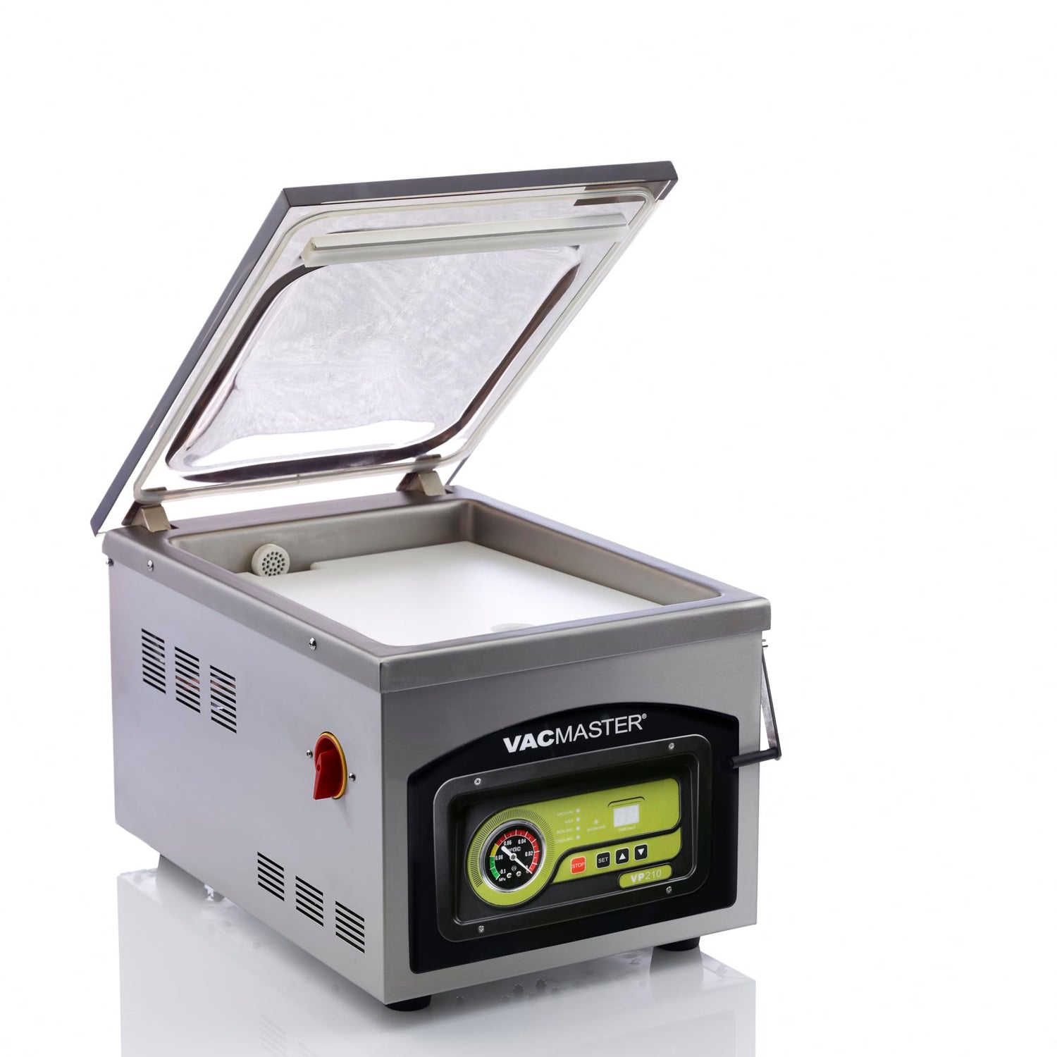 Details: The VacMaster VP 210 Chamber Machine provides a solution to the problem posed by vacuum packaging machines currently on the market: how to vacuum package liquids and liquid-rich foods. Current machines on the market are suction machines, meaning air is vacuumed out of the vacuum bag, then the bag is sealed. However, along with the air, liquids are also vacuumed out of the bag, leading to partial or failed seals. The VP210 Chamber Machine uses different technology to eliminate this problem. When sealing with our chamber machine, the vacuum bag to be sealed is placed inside the chamber of the machine, and the lid is closed. Then air is sucked out of the entire chamber, not just the bag, allowing the air pressure on the inside and outside of the bag to remain equal and liquids to stay in the bag. The bag is then sealed, and the air let back into the chamber. In addition, the chamber machine can reach a higher level of vacuum. Most suction machines obtain a 24-26 hg level of vacuum, while chamber machines are able to obtain a 27-29 hg level of vacuum.