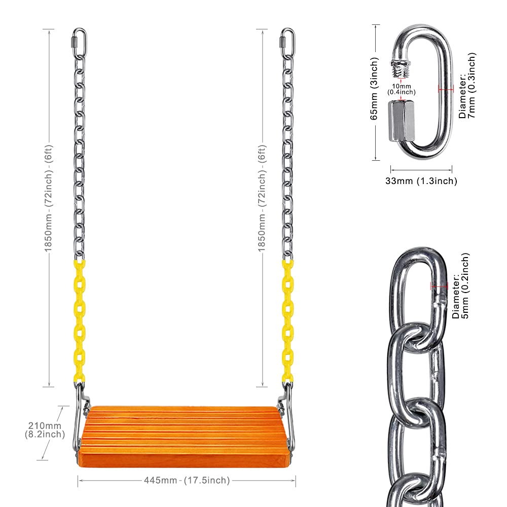 - 【Packing List】One wooden swing seat with 66 inch chains and 2 snap hooks. The wooden seat size is 17.5 x 6.3 x 1 inch, not only suitable for kids but adults to have fun!