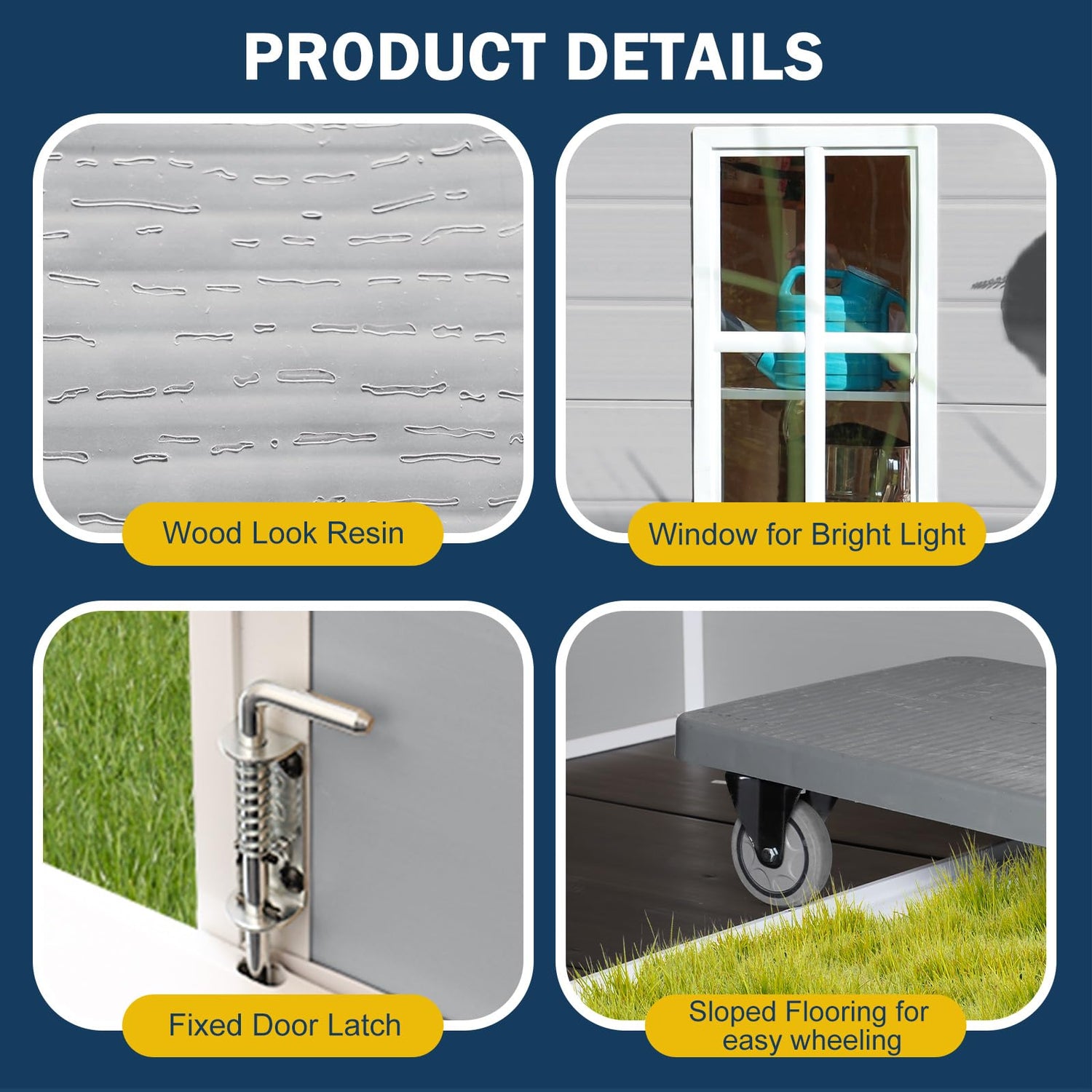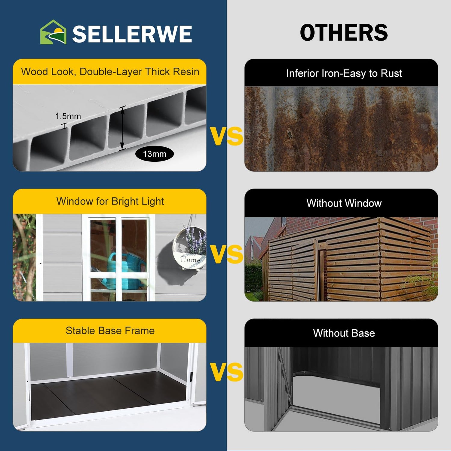 - 🏡[PREMIUM MATERIAL STORAGE SHED WITH FLOOR]: The 13mm tough double-wall resin construction and impact-resistant floor are designed for long-term durability. The double-wall panels are waterproof and moisture-proof, allowing worry-free use in all weather conditions. It is weather-resistant, waterproof, and UV-resistant—no peeling, rotting, or rusting. The screws are embedded to ensure aesthetics and safety.
