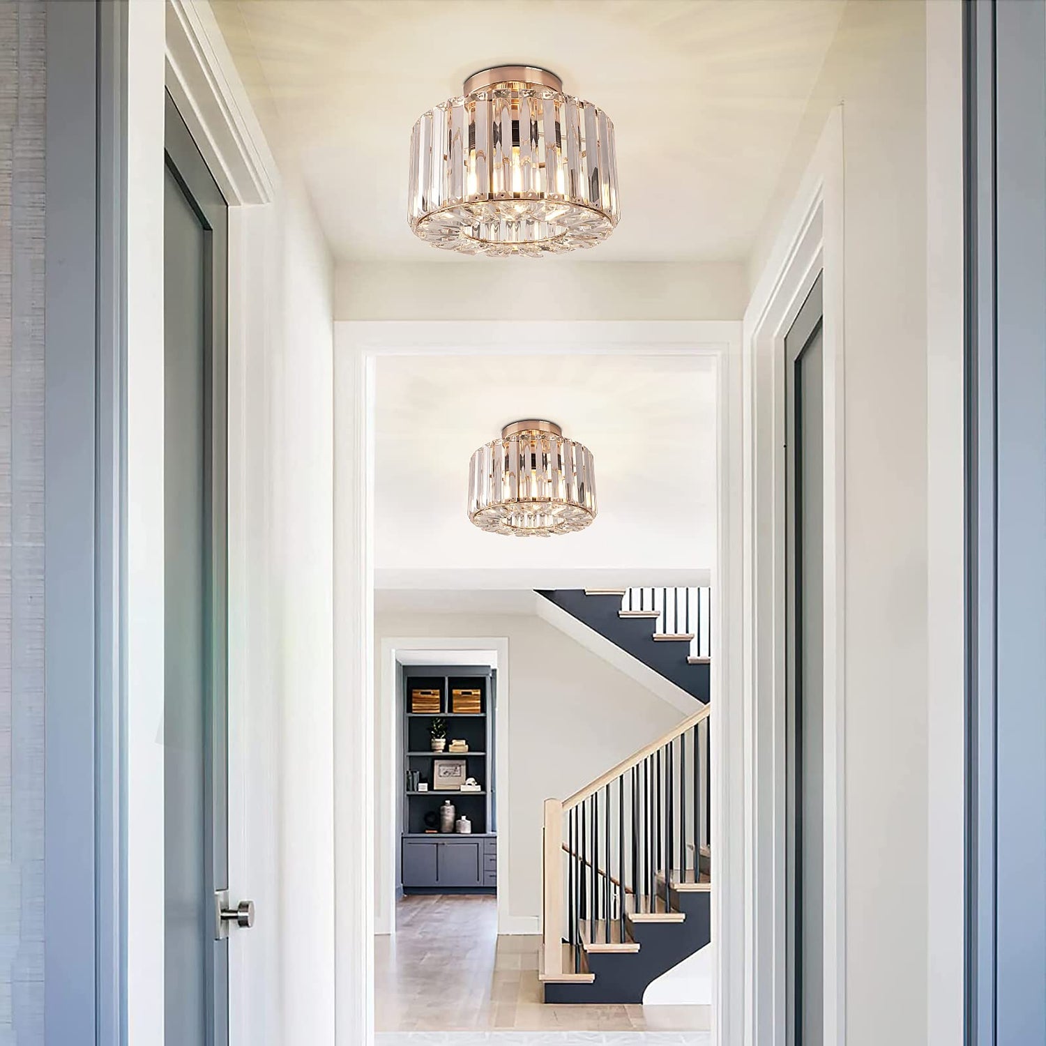 Semi Flush Mount Ceiling Light - Crystal Chandelier Modern Ceiling Light Fixture Hallway Light Fixtures Ceiling Gold Flush Mount Ceiling Light for Porch Kitchen Bedroom Living Room Entryway