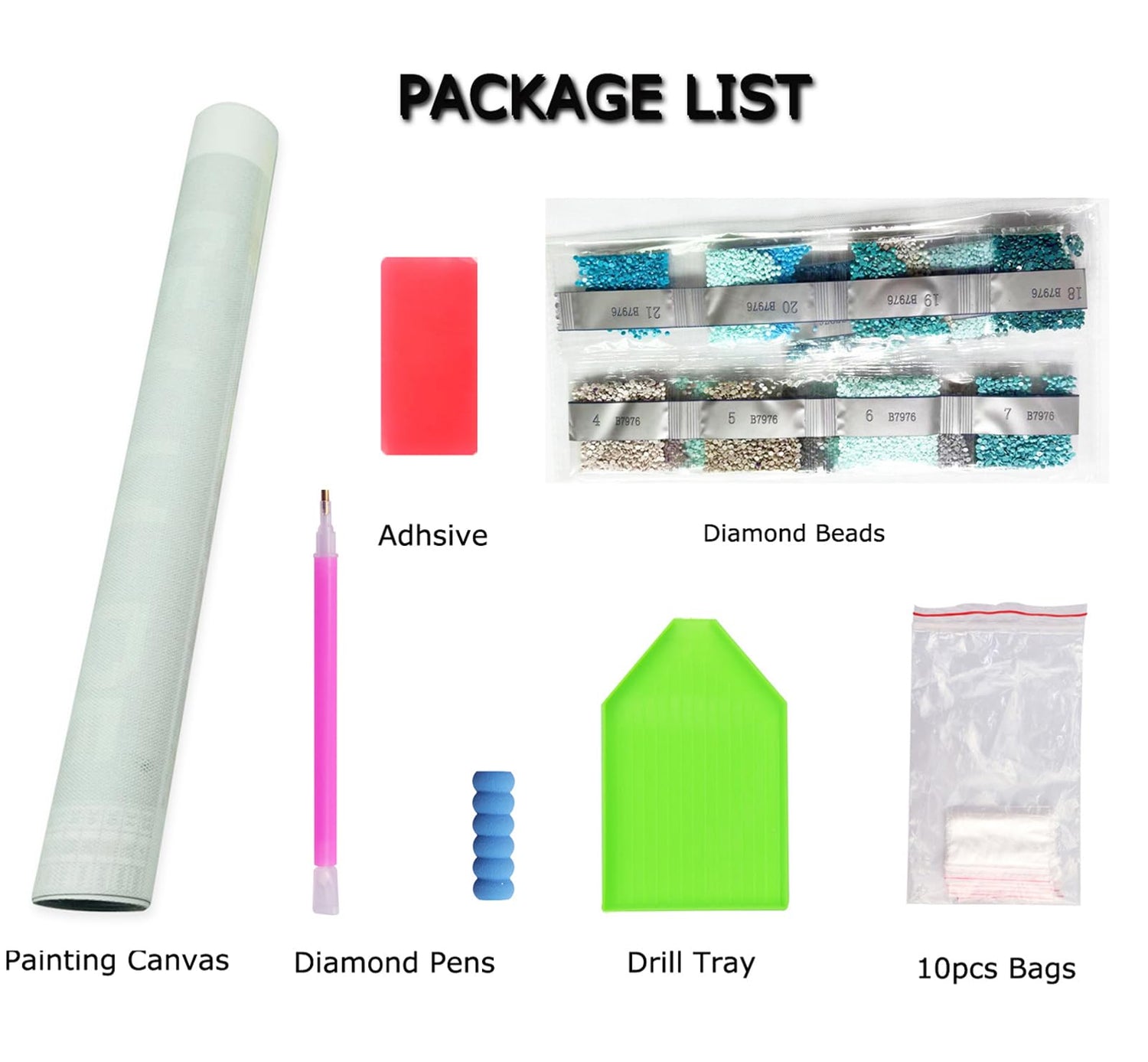 - Diamond Art Tools:Our paint kits contain all tools, include 1pcs Point diamond pen,1pcs 12 X 16 in canvas,1pcs x glue,1pcs trays, 10pcs ziplock bag and Enough Colorful round diamonds (offer extra 30% diamond dots beads), so you don’t need to purchase any additional tools.