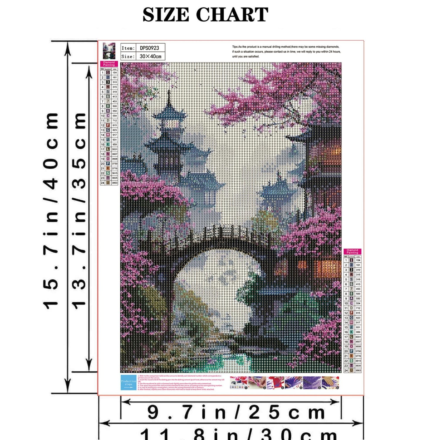 Semneroy Bridge Flower Diamond Painting Kits for Adult Beginners,Cherry Blossoms Building Diamond Art Kits,Full Drill Paint with Diamond Dot Gem Art Painting for Home Decor 12x16 inch
