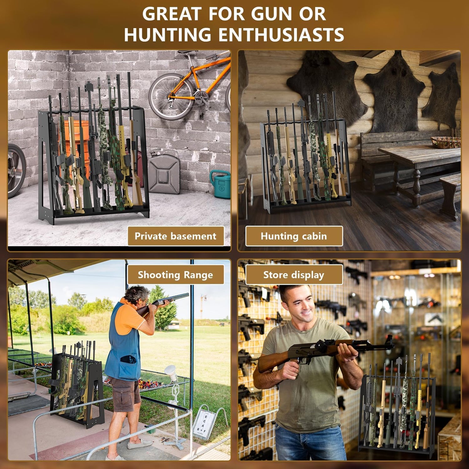 - Mutli-scene Applications: Whether it is an outdoor shooting range, hunting range, or indoor storage of firearms, floor standing gun racks can make your favorite guns well organized, easy to take and put.