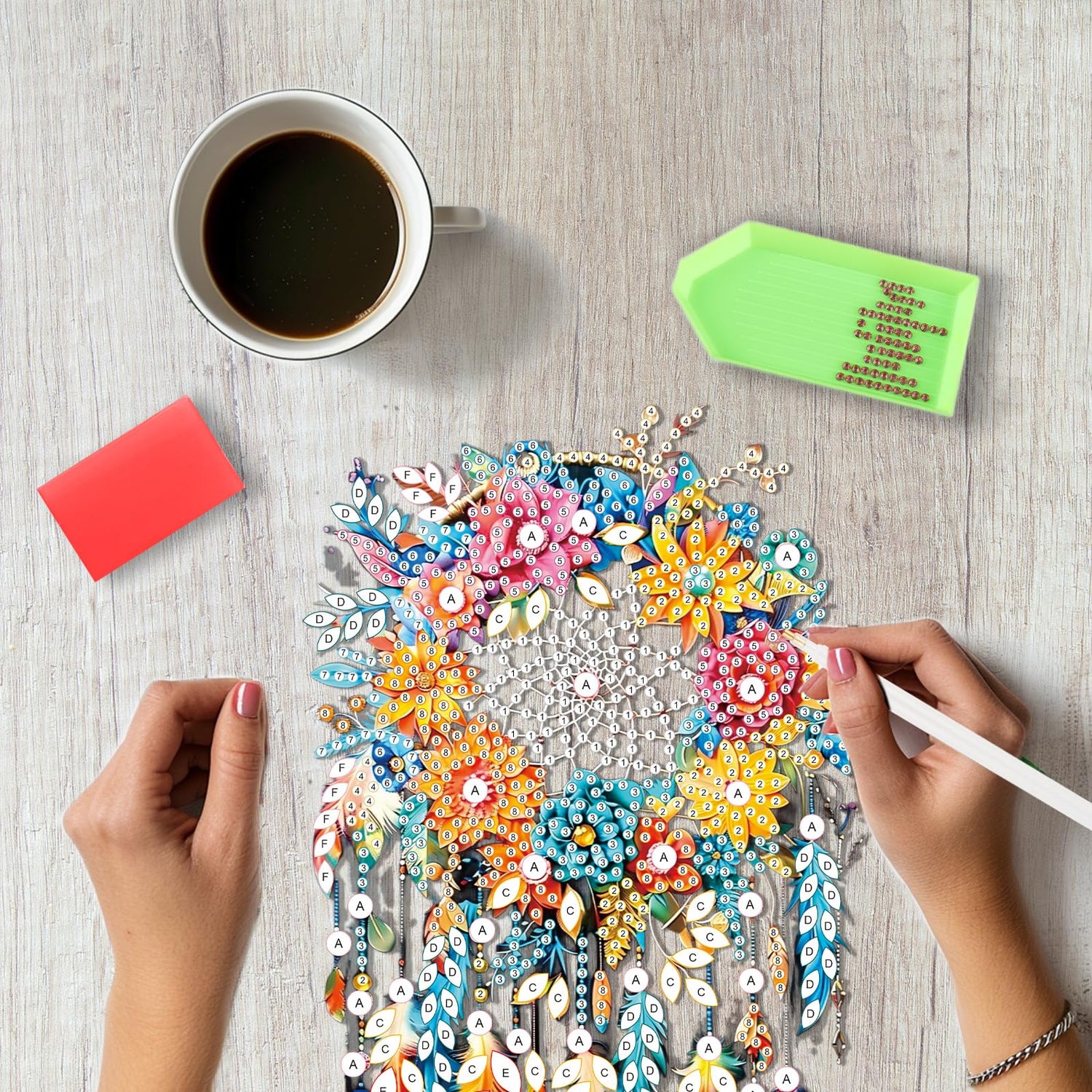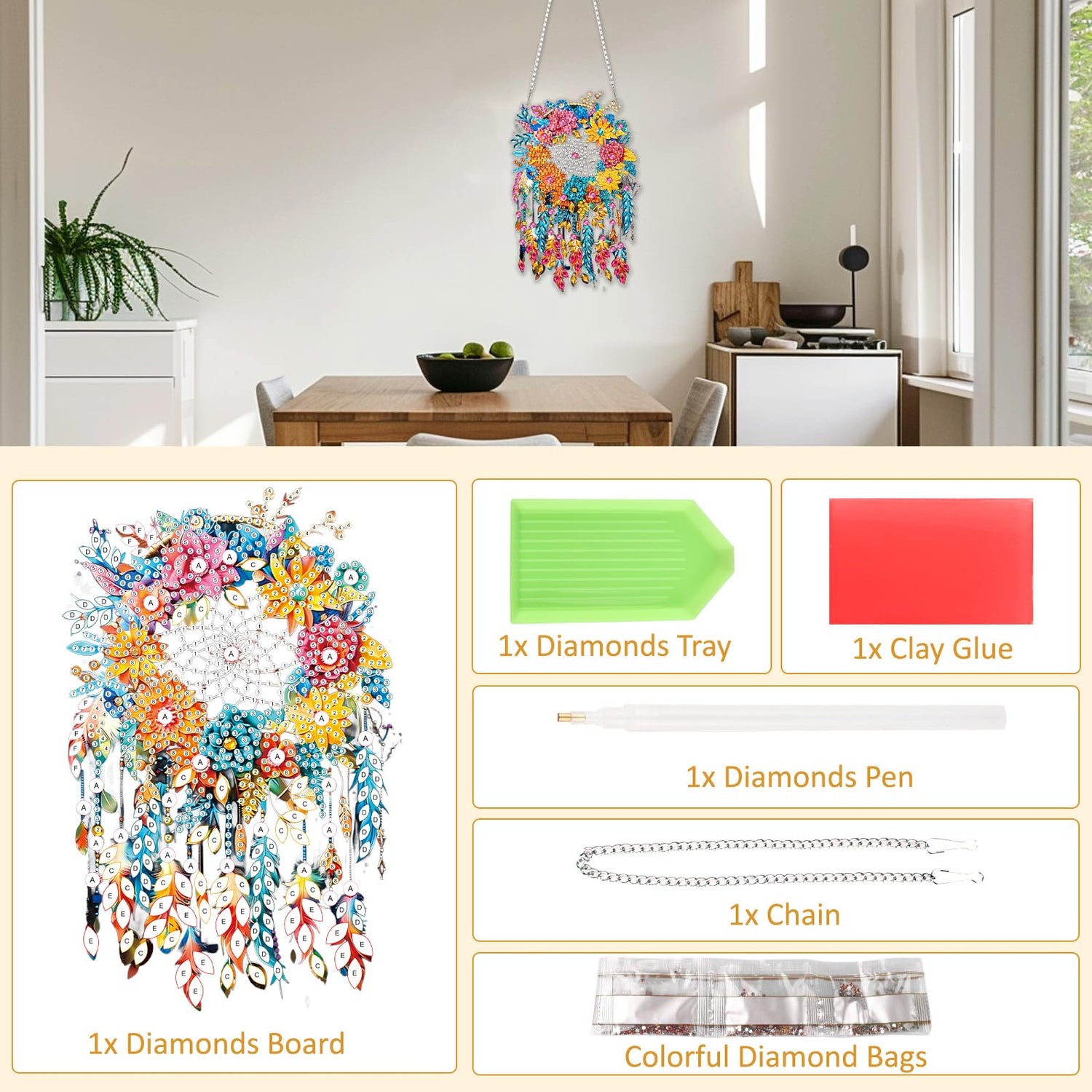 SENQAO Dream Catcher Hanging Diamond Art Painting Kits for Adults Beginners, 5D Special Shape Diamond Art Kits, Flowers Crystal Rhinestones Diamond Gem Art Painting for Home Garden Wall Decor