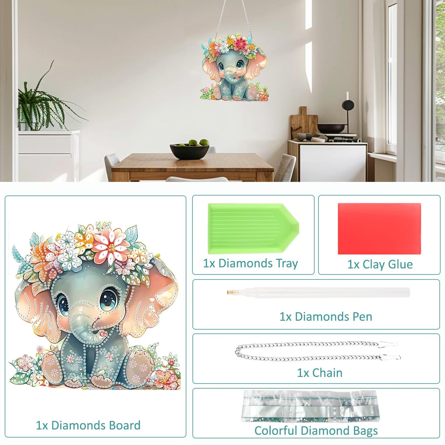 - Diamond Painting Kit Include: Package comes with enough colorful diamonds, diamond hanging plate x1, iron chain x1, point diamond pen x1, cube x1, diamond tray x1, red glue clay x , with beautifully crafted boxes, providing everything needed for art completion