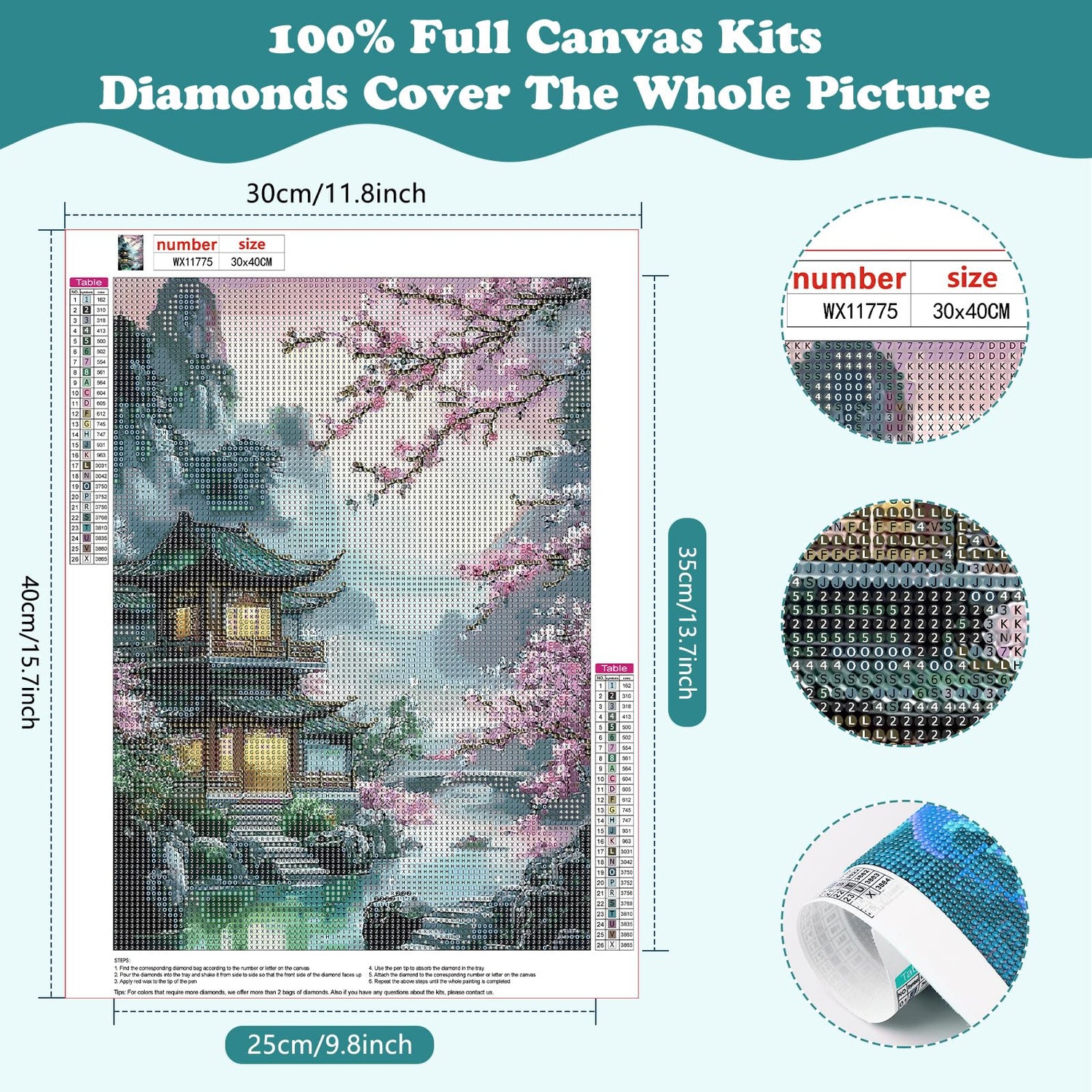 - Diamond Art Size And Package: 12 "x16" full diamond Diamond art,Include 1*high definition painting canvas, 2*point diamond pen, 1*cube diamond tray, 1*red glue clay, 1*pen cap, 5*valve bags.enough colorful round diamonds
