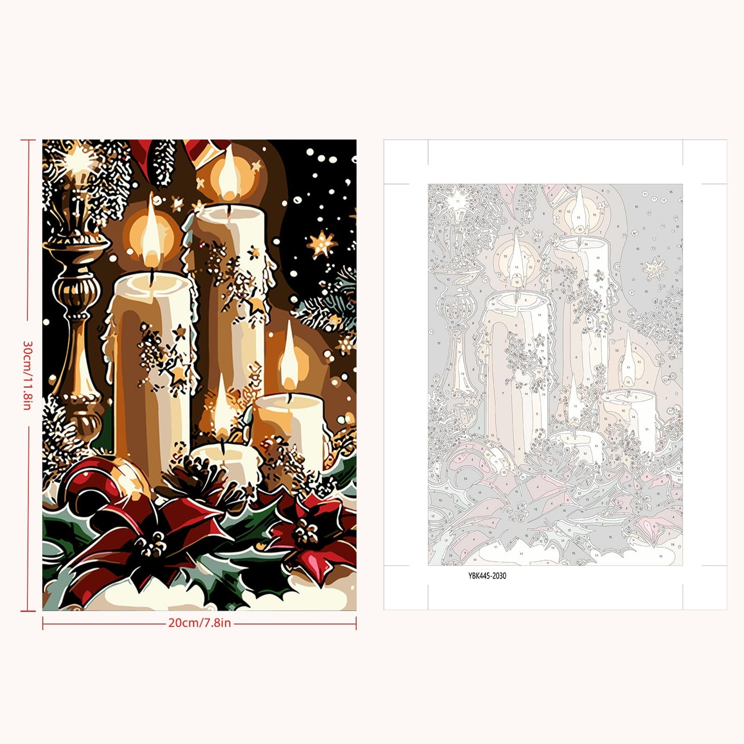 SENQAO Framed Paint by Numbers Kit for Adults Beginners with Wooden Easel, Christmas Candles Easy Paint by Number Kit with Frame, Watercolor Adult Paint by Number Framed Canvas 7.8x11.8inch