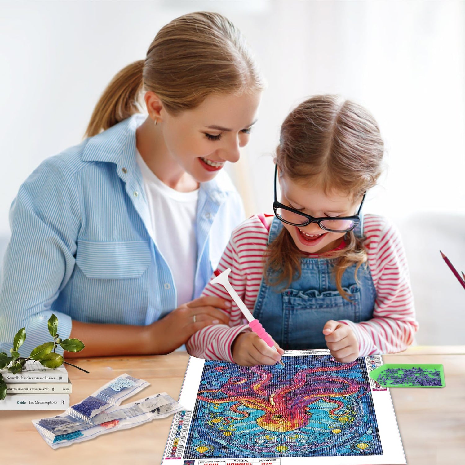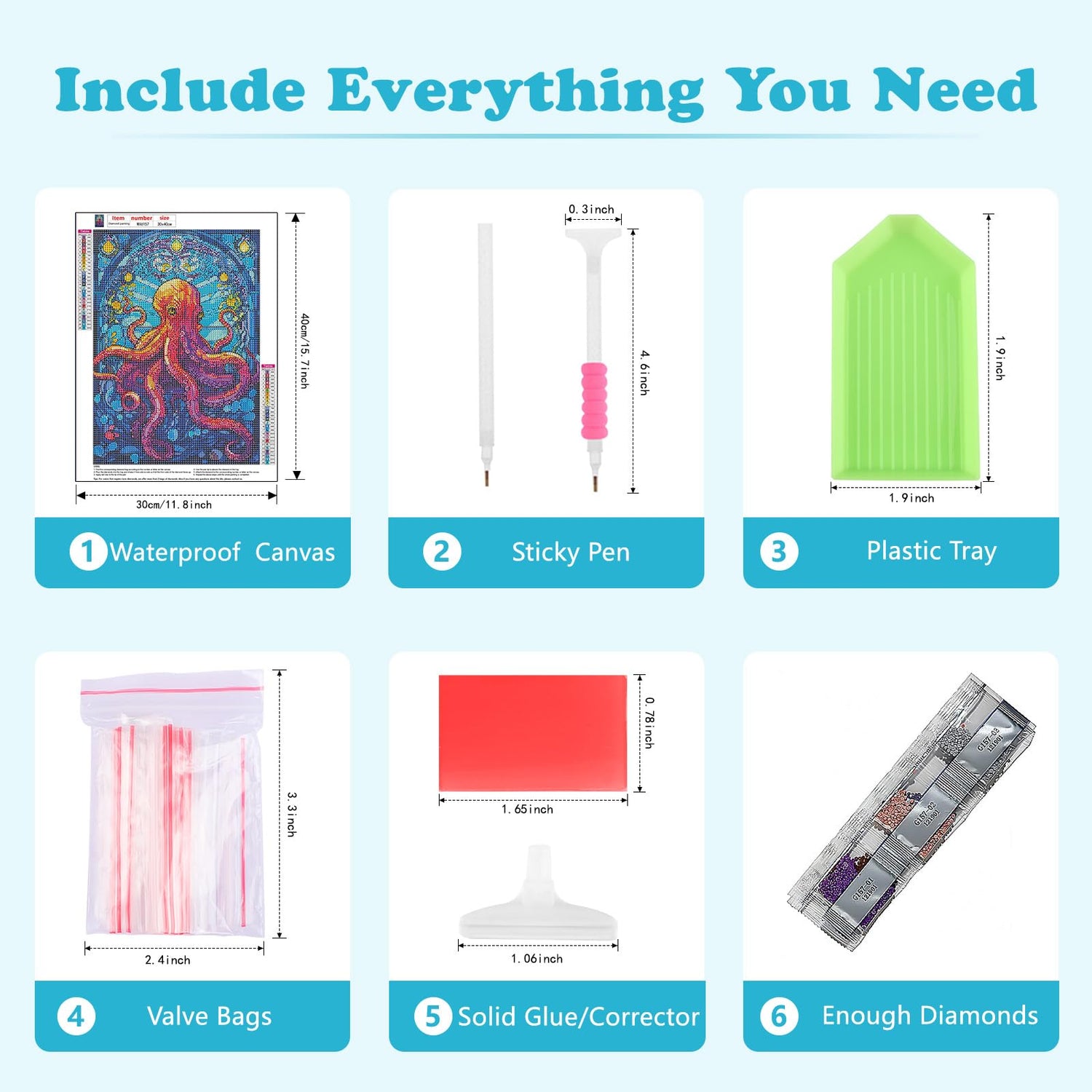SENQAO Octopus Diamond Art Kits for Adults, Stained Glass Full Drill Diamond Dots Paintings for Beginners, Round 5D Paint with Diamonds Pictures Gem Art Painting Kits DIY Crafts Kits 30x40cm