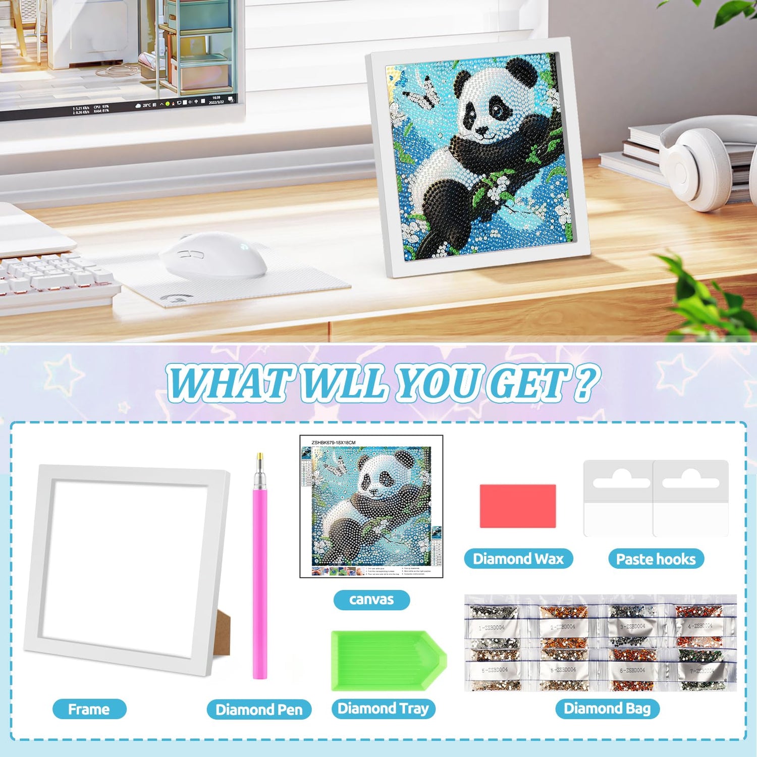 SENQAO Panda Diamond Art Kit for Adults with Frame Art and Crafts for Adults Ages 6-8 -10-12 Easy to DIY Diamond Art for Adults and Adult Beginners Home Wall Decoration 7.1x7.1inch