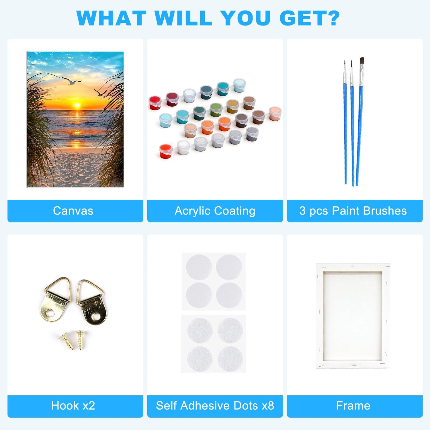 SENQAO Sunset Paint by Numbers for Adults Beginners Framed, Beach Adults' Paint-by-Number Kits, Adult Paint by Number Kits on Canvas, Acrylic Number Painting for Home Decor, 8x12in