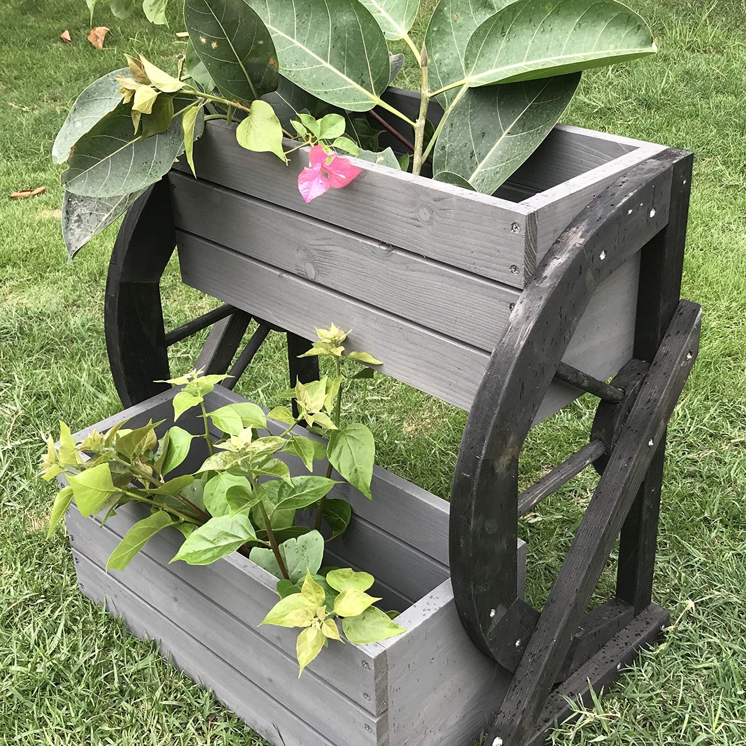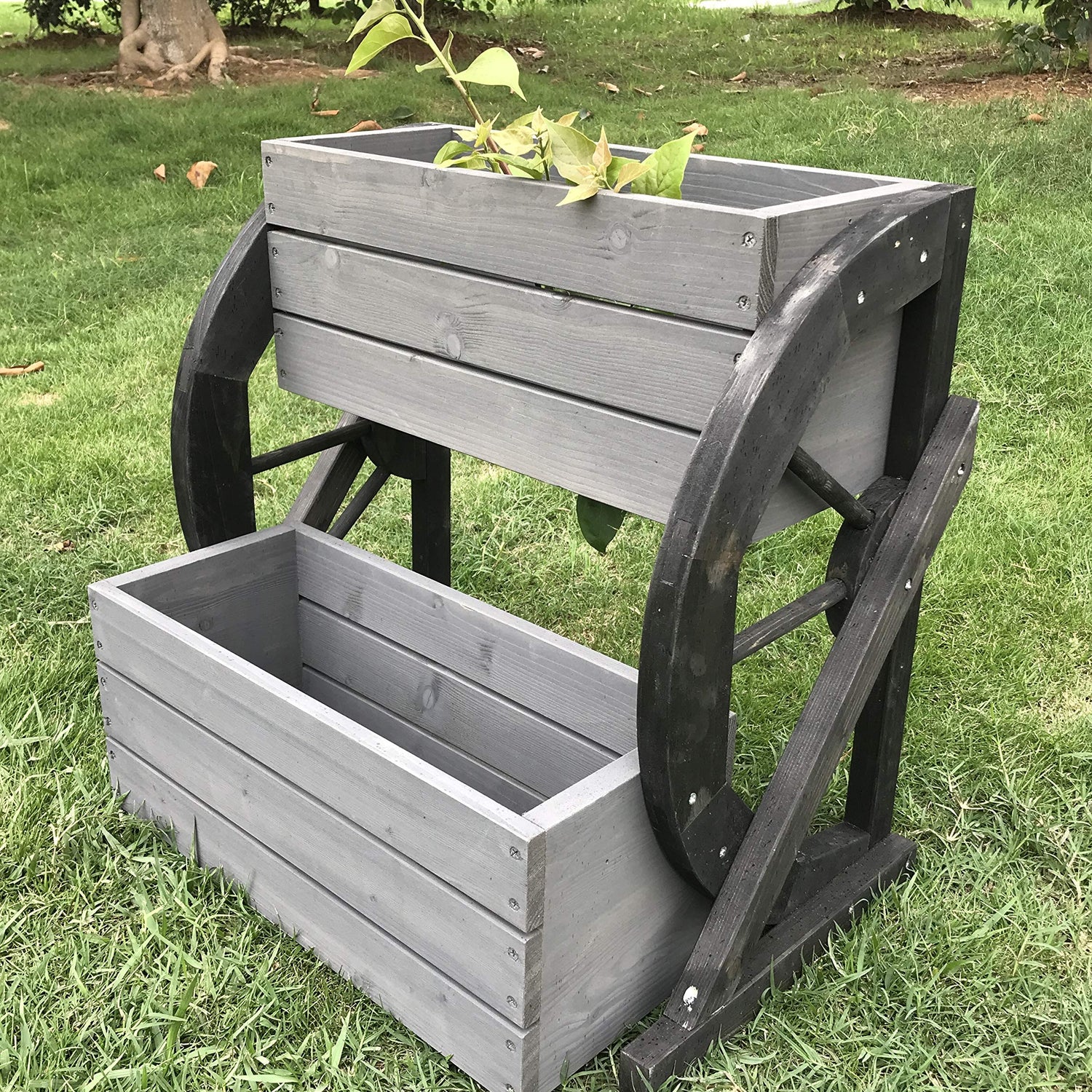 - Unique style design, the product is very suitable for garden decoration. Two square planters for plantation;