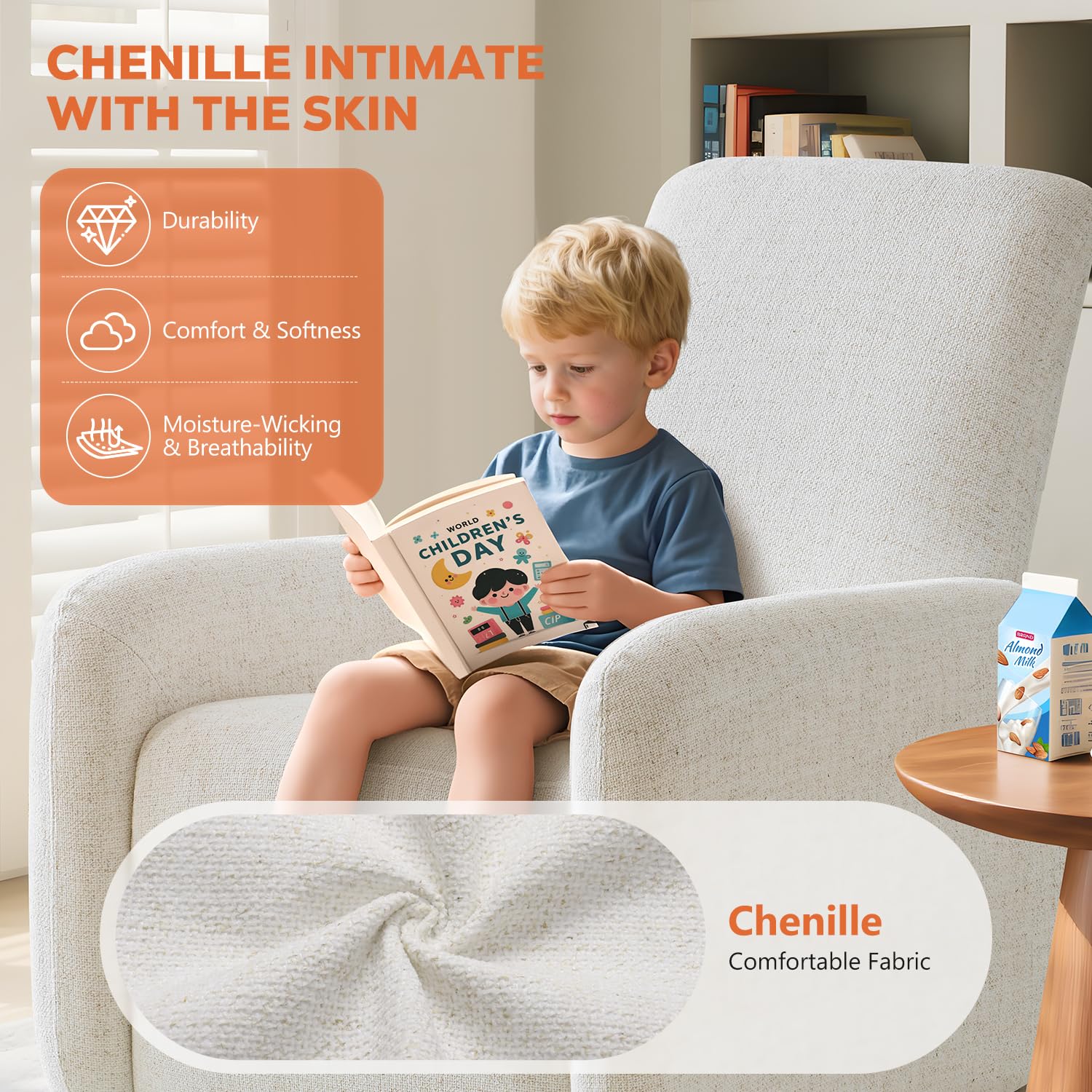 - 【PREMIUM MATERIALS】Our rocker reclining chair is made of solid wood and Chenille with linen(Advantages of a blend of 90% chenille yarn and 10% natural linen fabric). The wood is formaldehyde-free and meets CARBb's P2 requirements. This Chenille fabric contains the properties of Softness, Moisture-Wicking, Breathability and Durability. Make it suitable for long time use