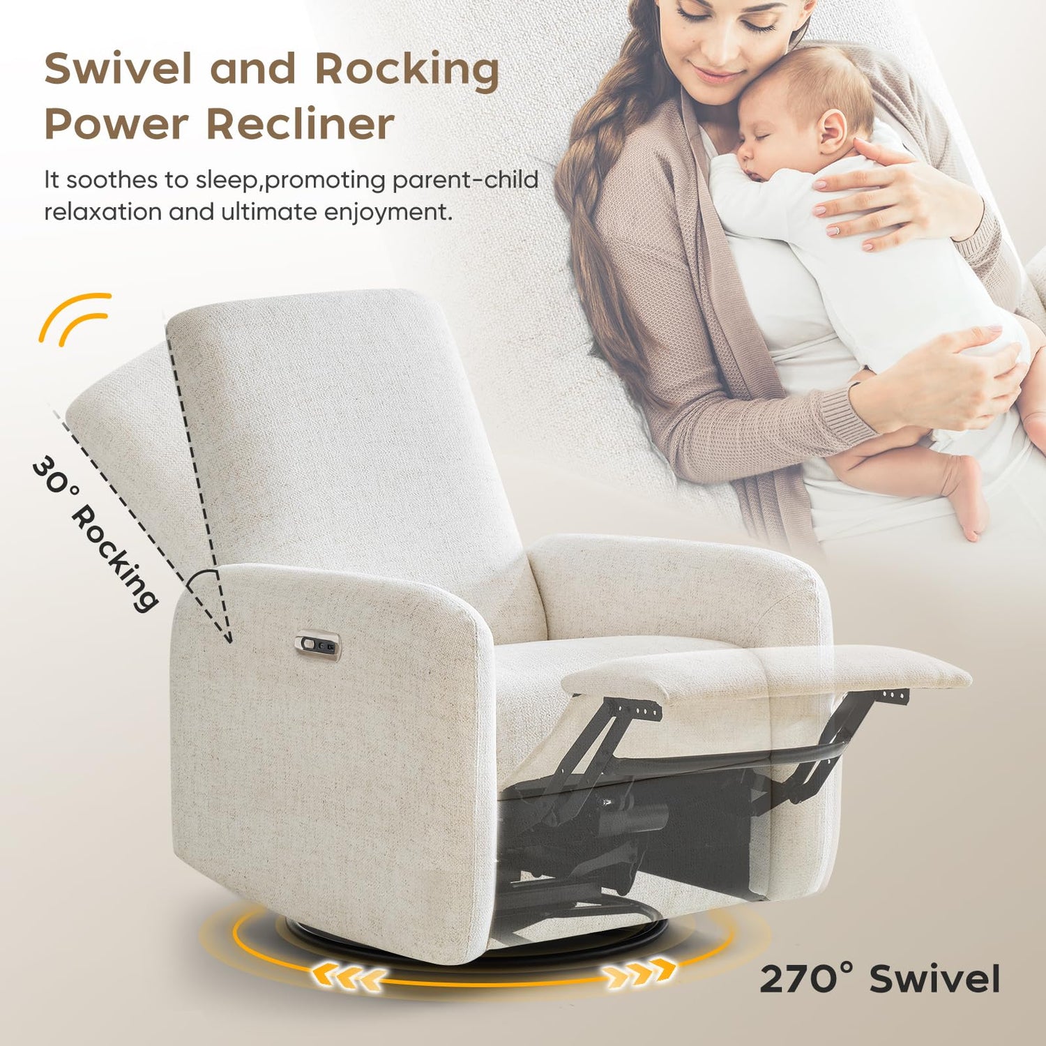 SENYUN Power Recliner Chair, Swivel Rocker Recliner w/USB & Type-C Charging Ports, Chenille Upholstered Swivel Rocker Glider Recliner for Nursery,Living Room, Bedroom, 1PC, Cream