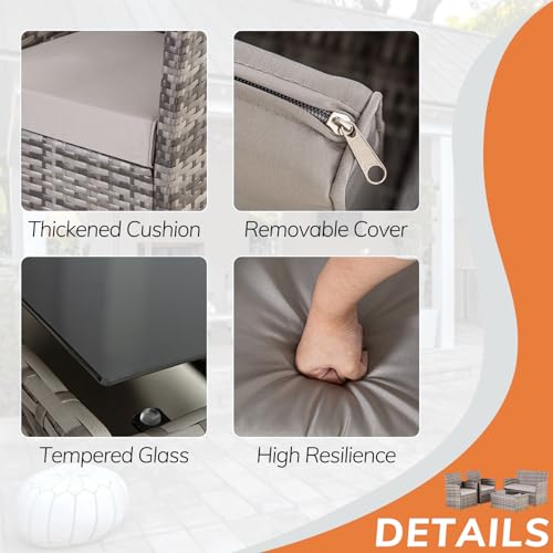 - ALL-WEATHER WICKER: Crafted with high-quality PE wicker, our furniture set is built to withstand various weather conditions, allowing for year-round use. The durable material ensures that the set maintains its appeal and functionality.Note: cushions are not water-proof, When you don' t use it, advise you to take cushions inside for longer service time.
