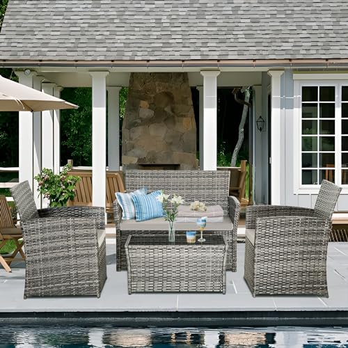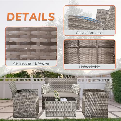 Seogwisam 4 Piece Patio Furniture Set,Outdoor Wicker Conversation Sets,Rattan Sectional Sofa w/Coffee Table,Seat Cushions for Backyard Porch Garden Poolside (Gray/Gray)
