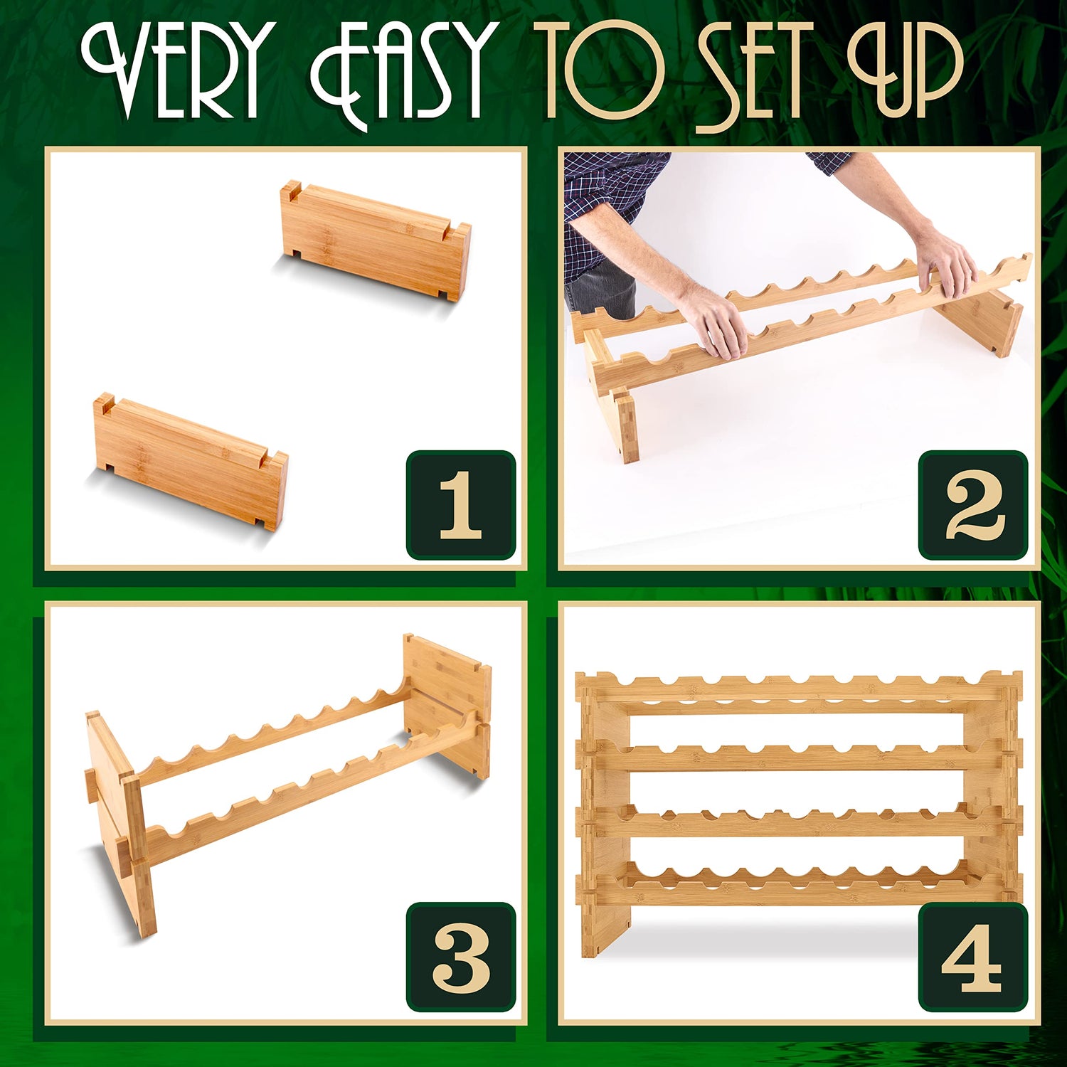 SereneLife Bamboo Stackable Wine Rack, 4-Tier 36 Bottle Capacity Wine Racks Free Standing Floor, No Tools Assembly, Modular Storage Display Shelf for Kitchen and Cellar 33.5" x 10" x 21"