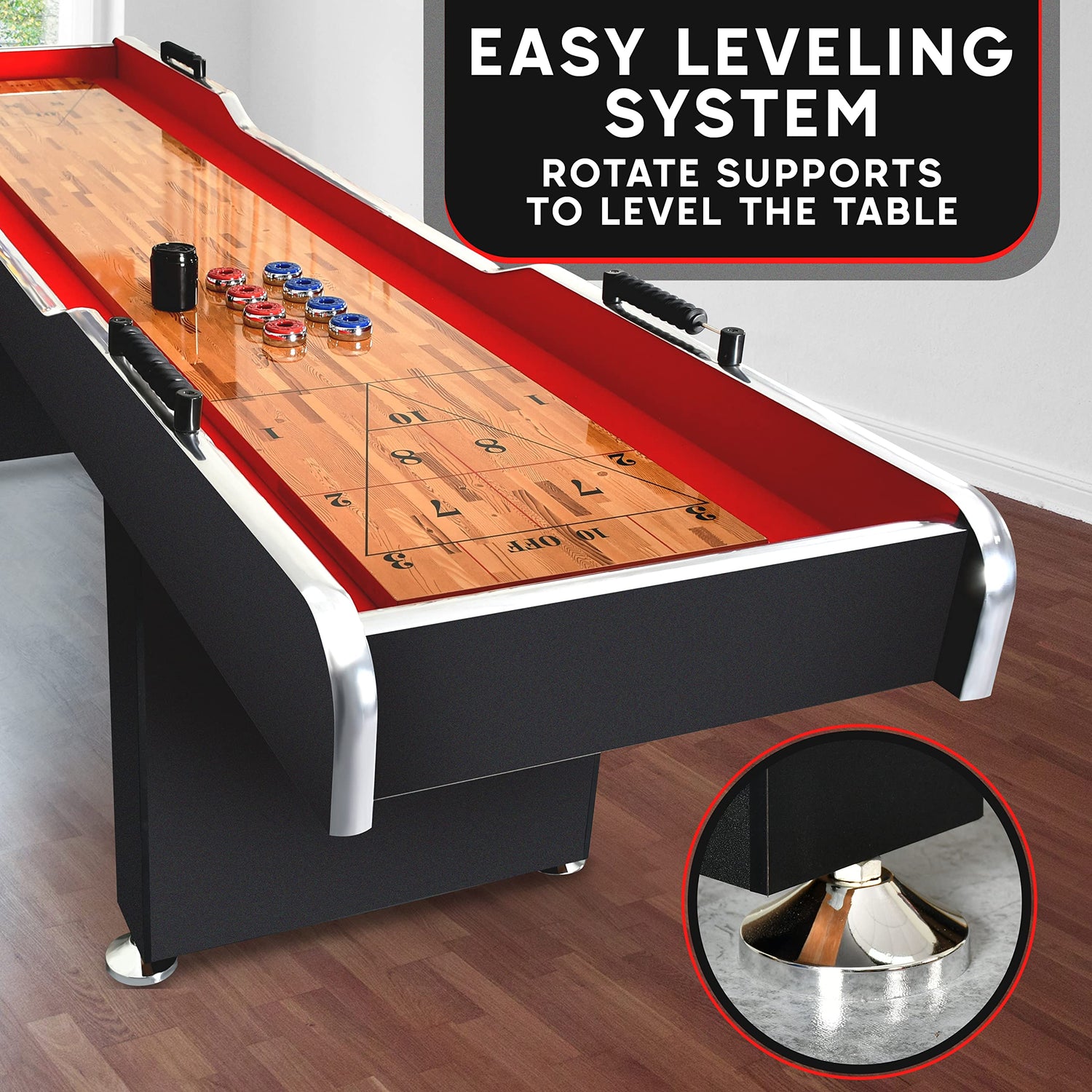 - PERFECT FOR FAMILY GAME NIGHTS: Game nights will be enjoyable with our 9ft shuffle board table, ideal for any game room, or anywhere in your home. Play and enjoy with our shuffleboard, and it will undoubtedly become a favorite during game nights