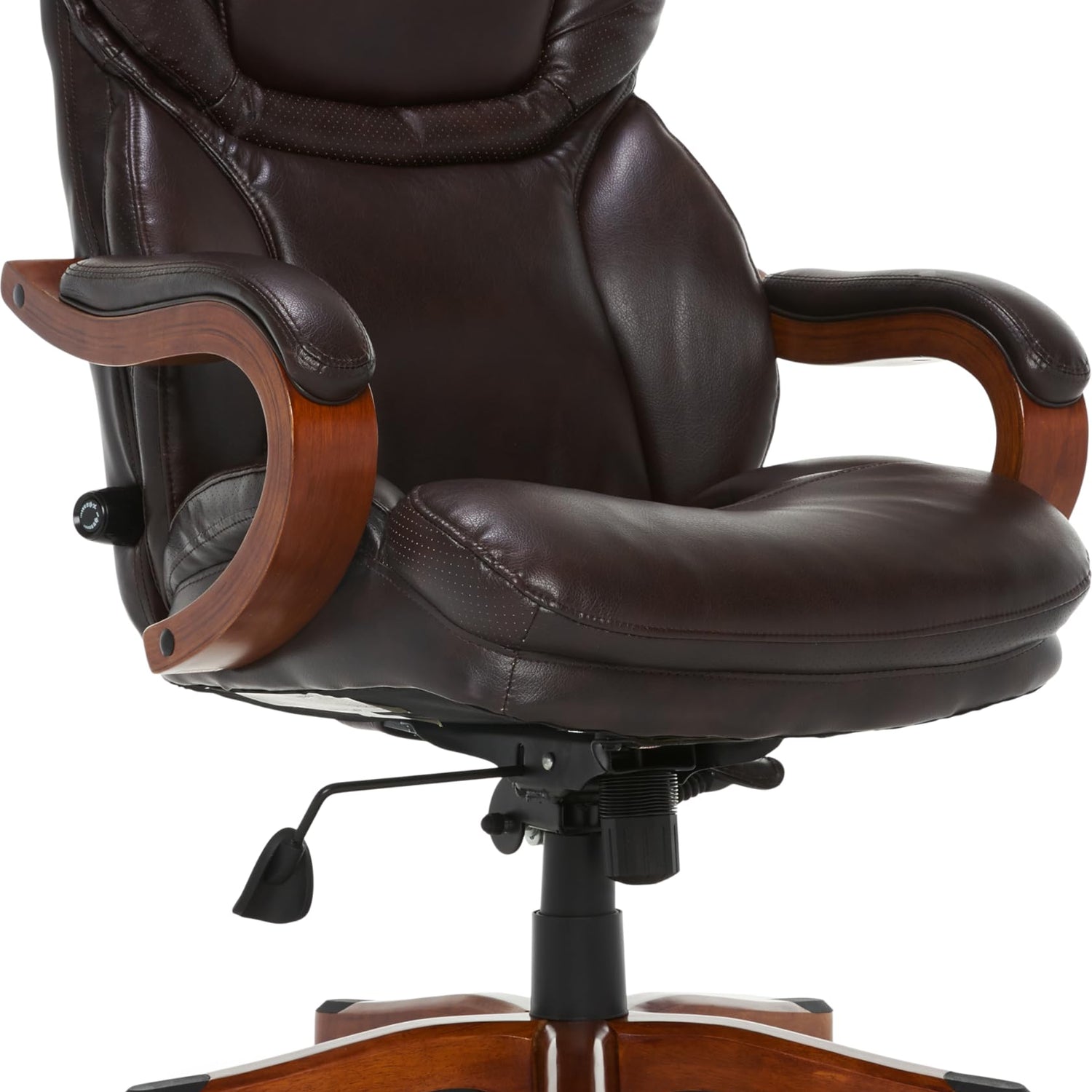 Serta Big and Tall Executive Office Chair with Wood Accents, Adjustable High Back Ergonomic Computer Chair with Lumbar Support, Bonded Leather, Brown