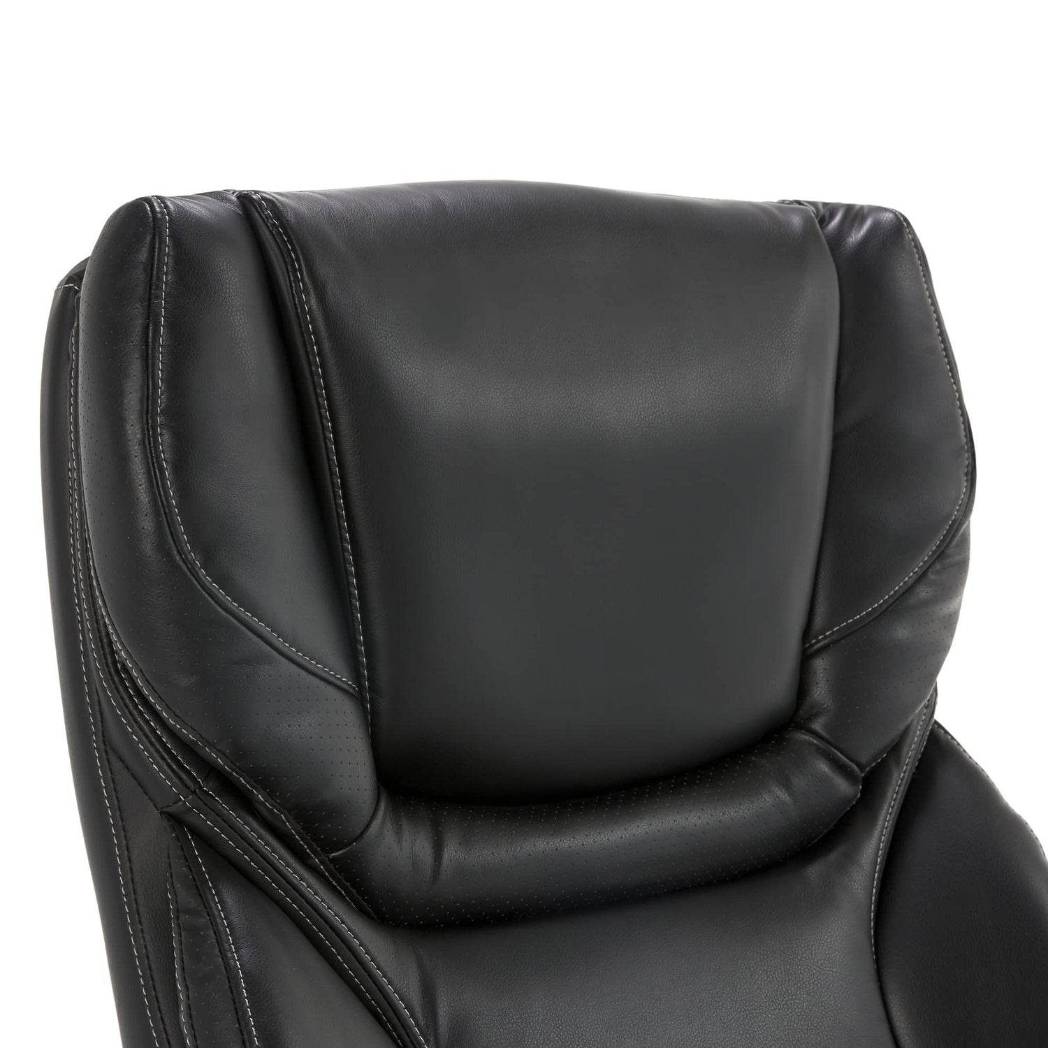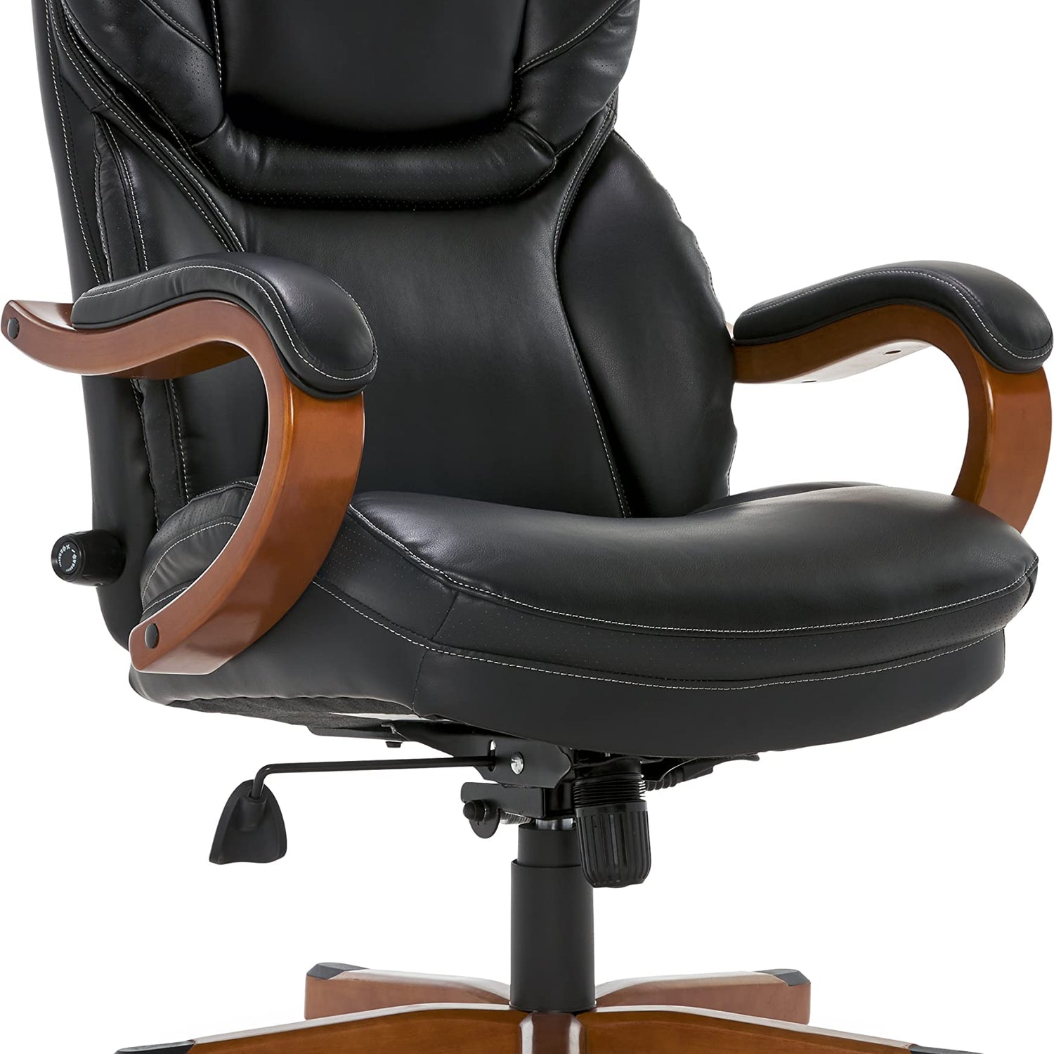Serta Conway Big and Tall Executive Office Wood Accents, Adjustable High Back Ergonomic Computer Chair with Lumbar Support, Bonded Leather, 30.5D x 27.25W x 47H in, Black