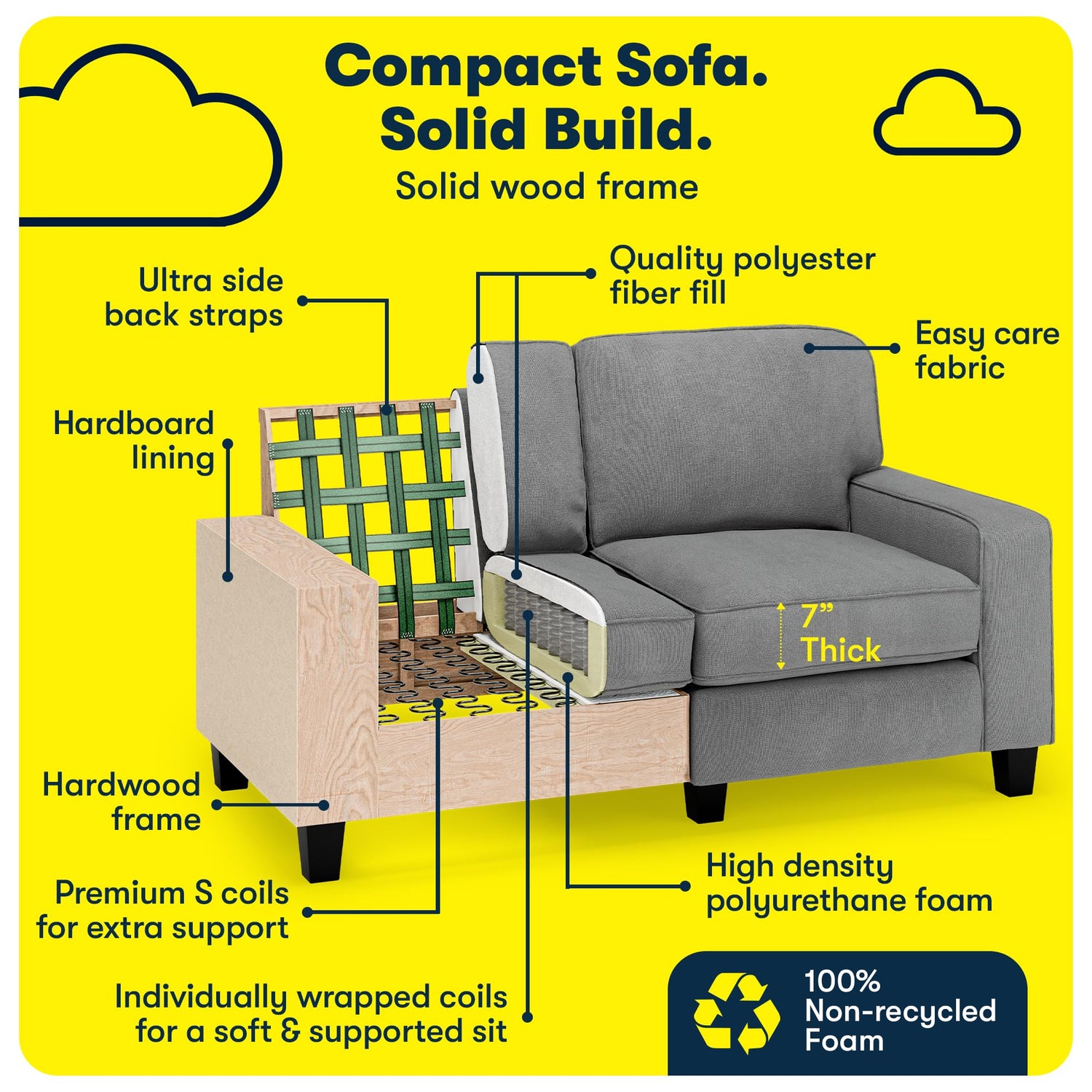 - SPACE-SAVING DESIGN: Its compact size and low-profile (61" wide x 33" deep x 36" high) make this two-seater couch a great choice for smaller apartments or lofts, living rooms, or home offices. Fits all doorways, halls, stairs or elevators. Better-suited for users under 6ft tall.