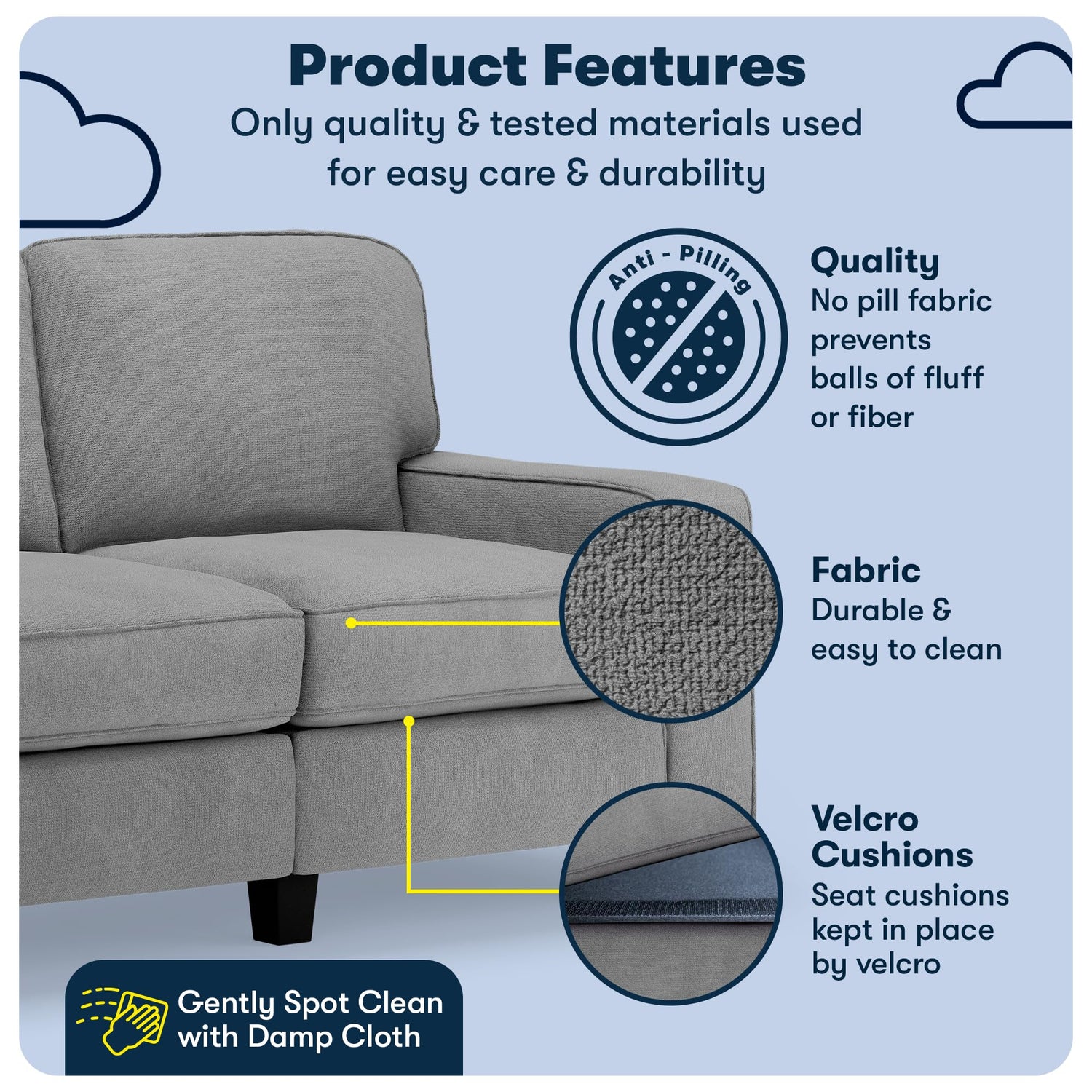 - SERTA FOAM & BUILD: Made of a solid wood frame fitted with sinuous springs for extra support and sturdy solid wood legs that can handle up to 450 lbs. All Serta sofas use quality, non-recycled and non-toxic foam for breathability and safety.