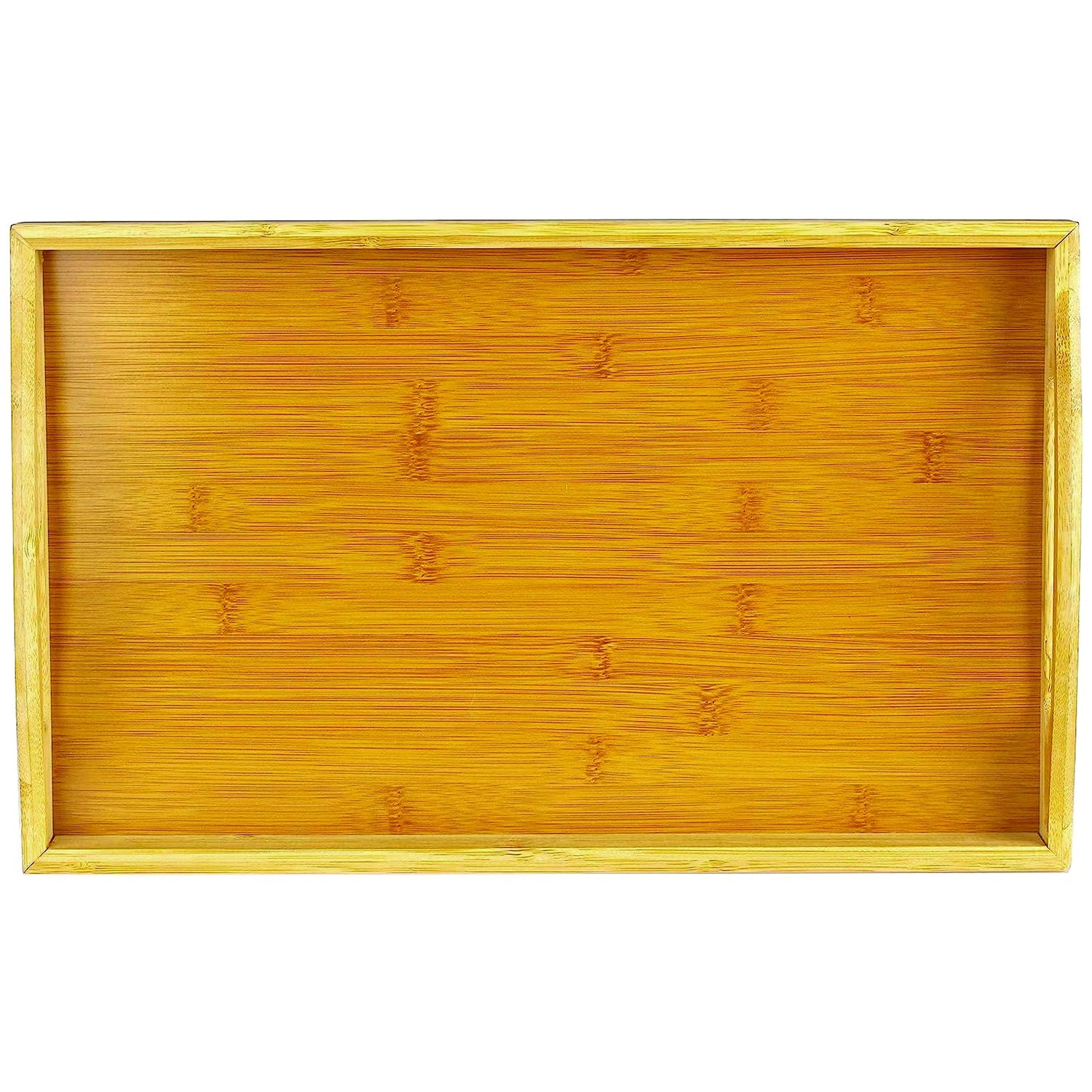 Serving tray bamboo - wooden tray with handles - Great for dinner trays, tea tray, bar tray, breakfast Tray, or any food tray - good for parties or bed tray
