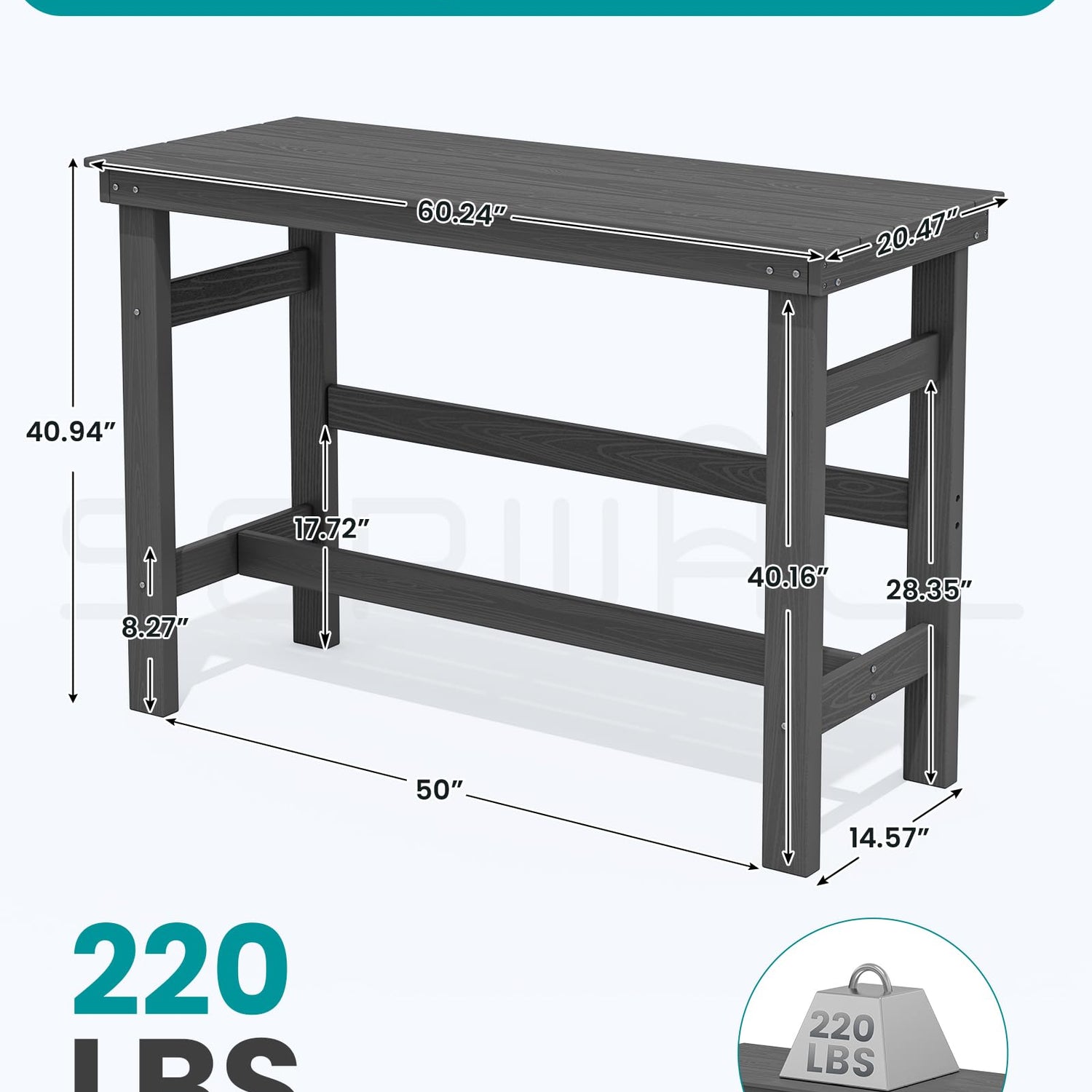 - All-weather Bar Table: Serwall outdoor bar table measuring 60.24"W x 20.47"D x 40.94"H, 2 reinforced bars and thickened plate design allows it to hold up to 220 pounds for stability and durability. The patio bar table is designed for use with bar chairs and bar stools with a height of 29"-31".