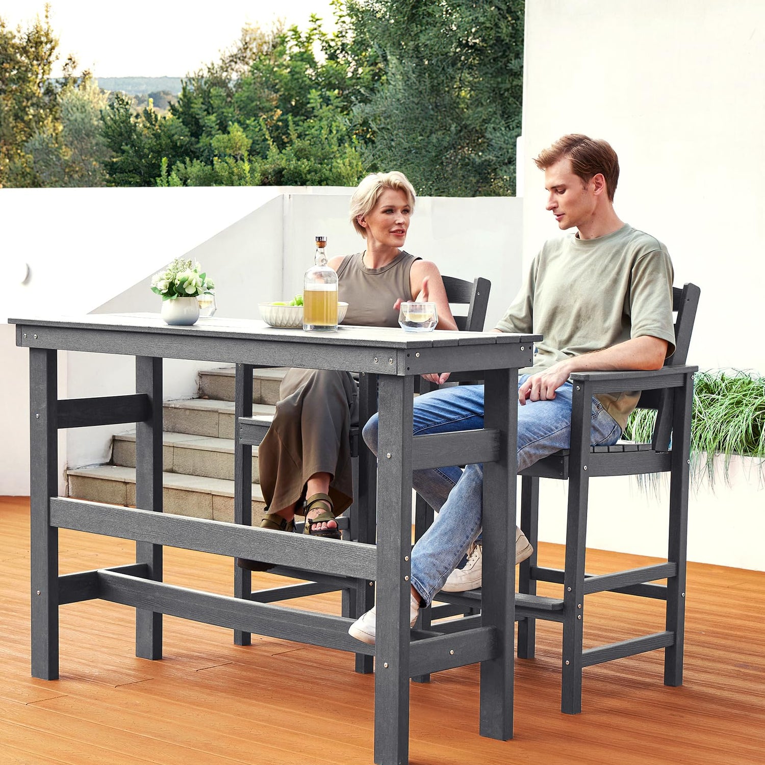 SERWALL 41" Outdoor Bar Table, All Weather HDPE Patio Bar Counter Height Table, Rectangle Patio Bar Table for Outside, Garden, Backyard, Balcony, Poolside, Grey