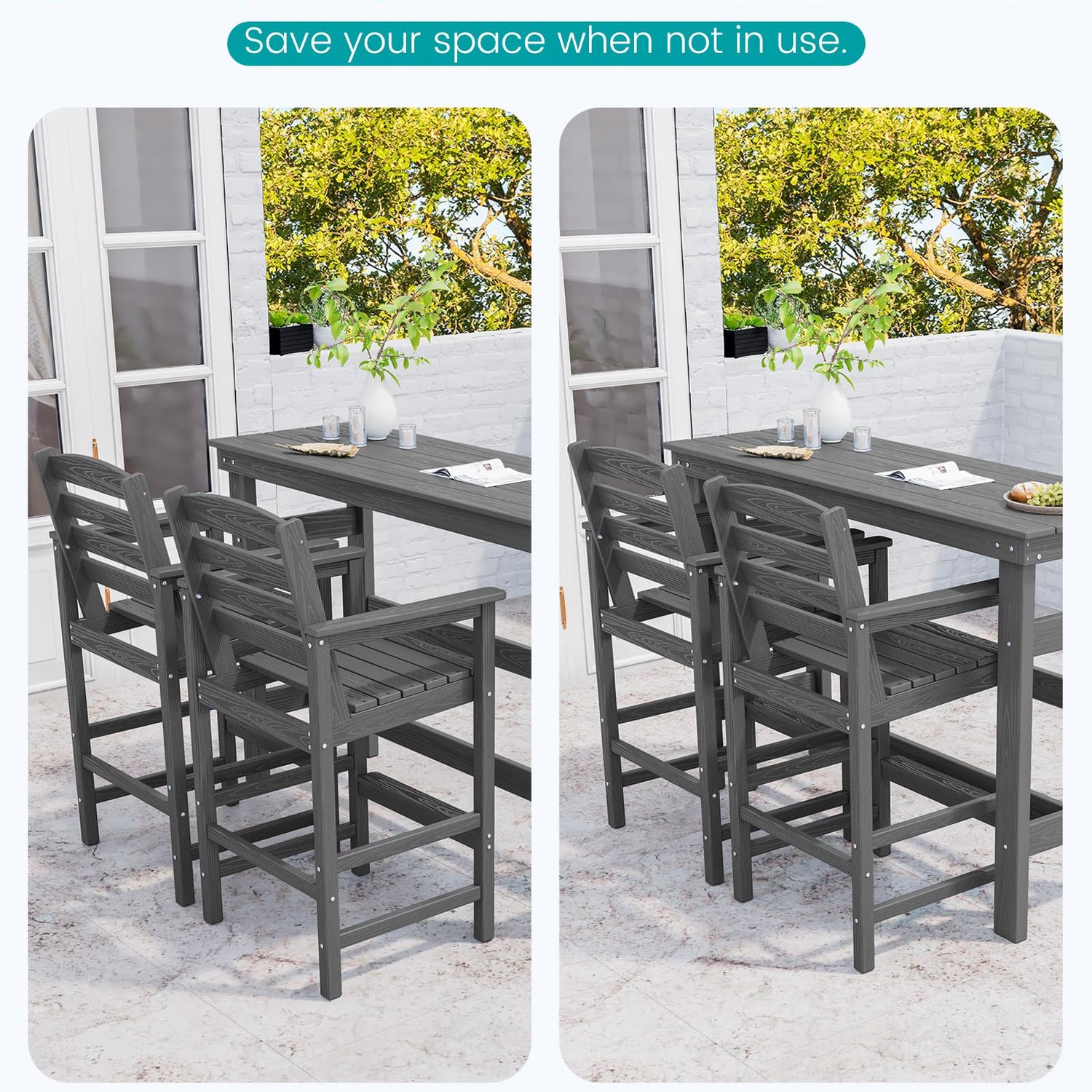 - Waterproof & Quick-Drying: The outdoor bar made from waterproof High-Density Polyethylene (HDPE), the slatted design allows rainwater to drain quickly, ensuring the surface dries rapidly after a downpour. This makes it an ideal choice for outdoor poolside use.