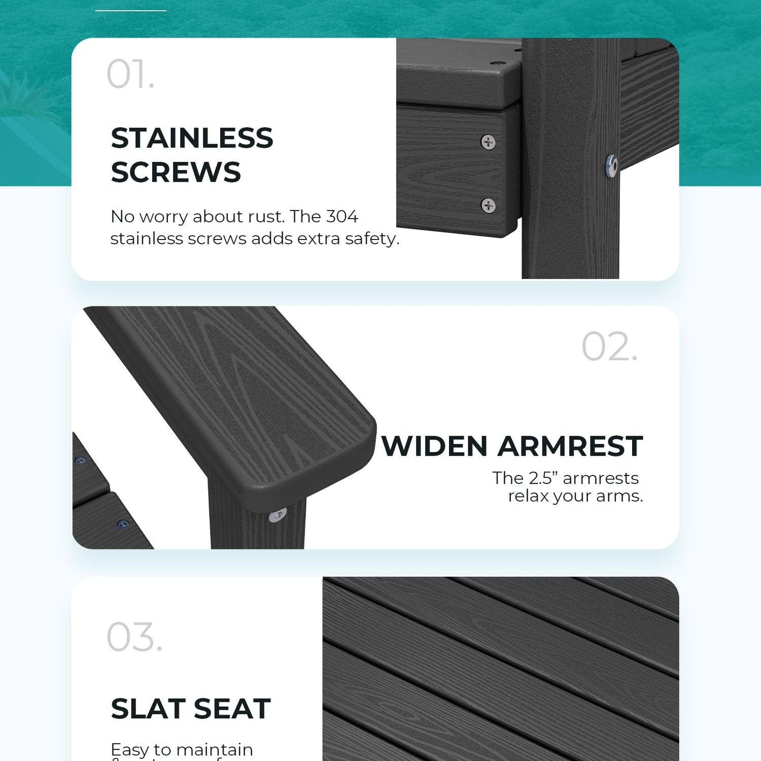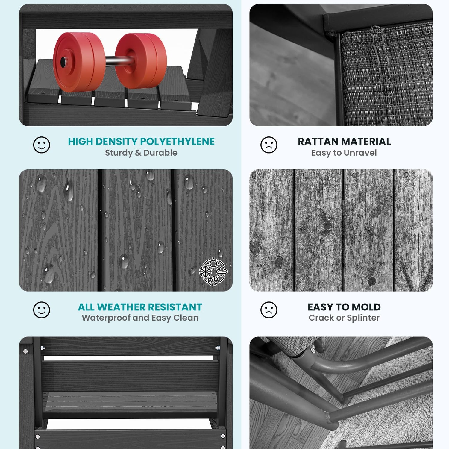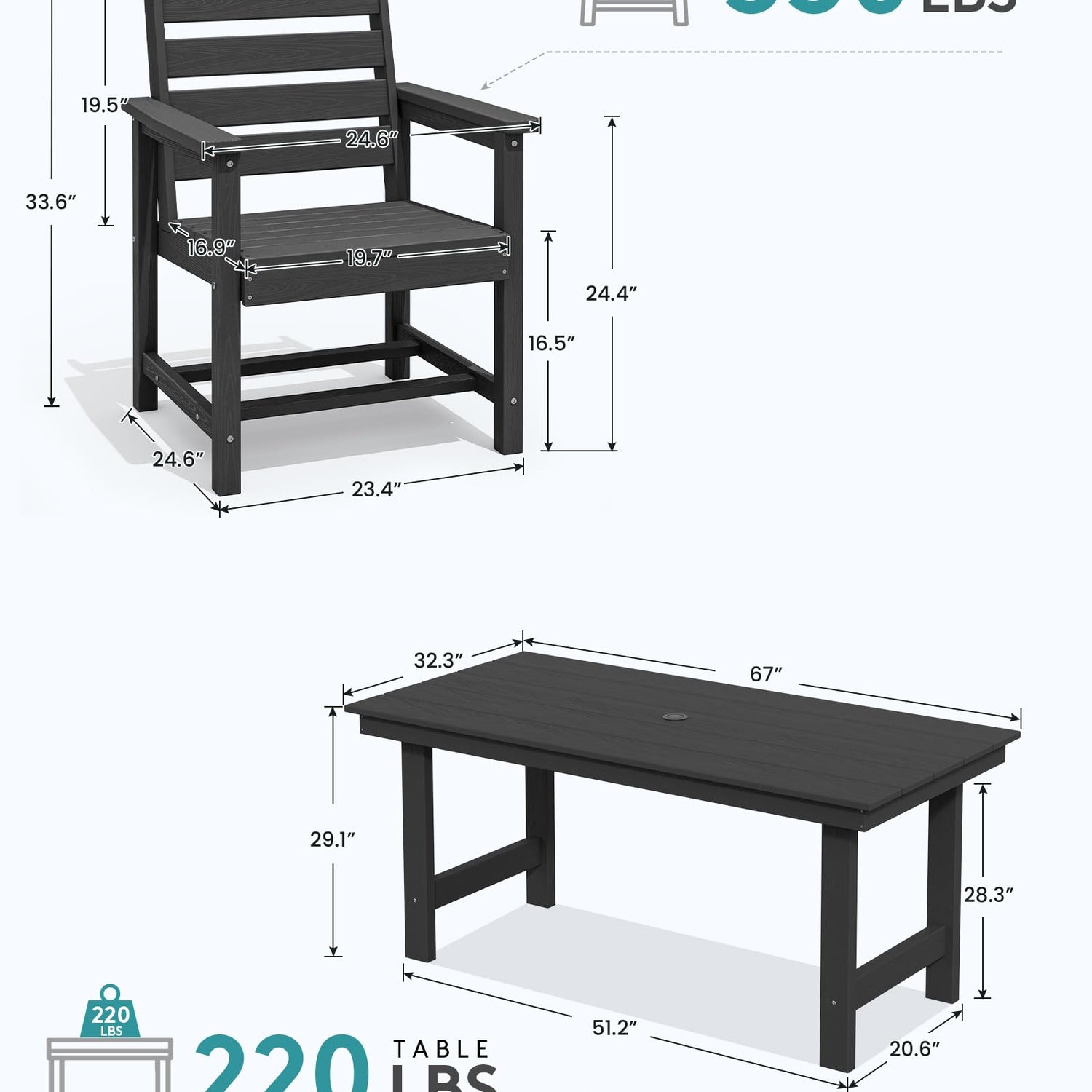 - 【Family-Friendly】HDPE patio dining table sets are family-friendly, providing a comfortable and safe space for outdoor meals and gatherings. Its rounded edge is safer than the steel material, making it ideal for families with children.