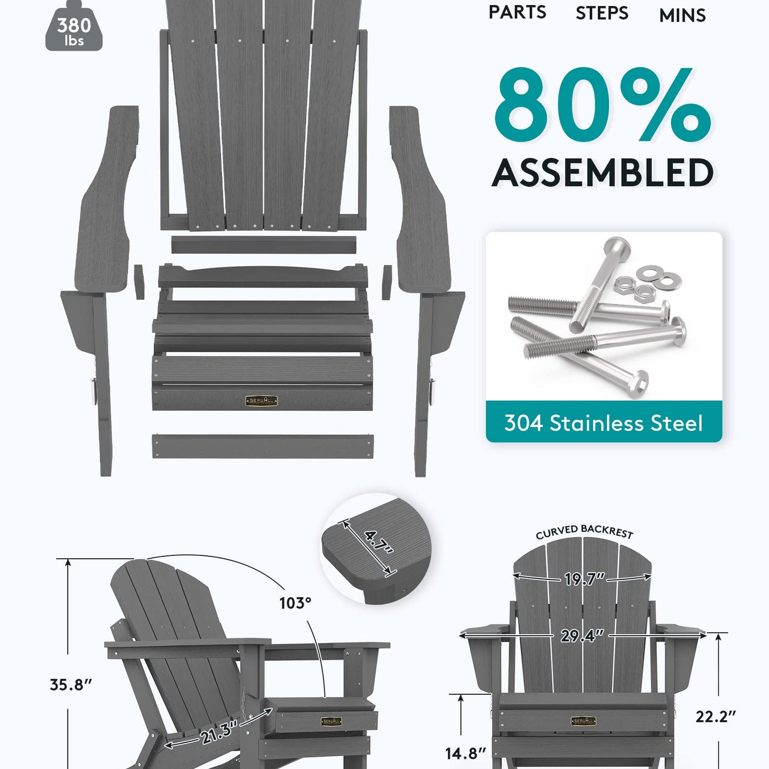 - GUARANTEE: We want our customers to be 100% happy and satisfied with SERWALL Adirondack Chair - You can always come to us for any product issue and product care at our Amazon store, we are committed to satisfying our customers.