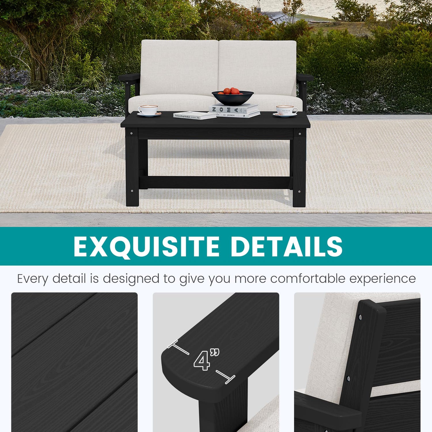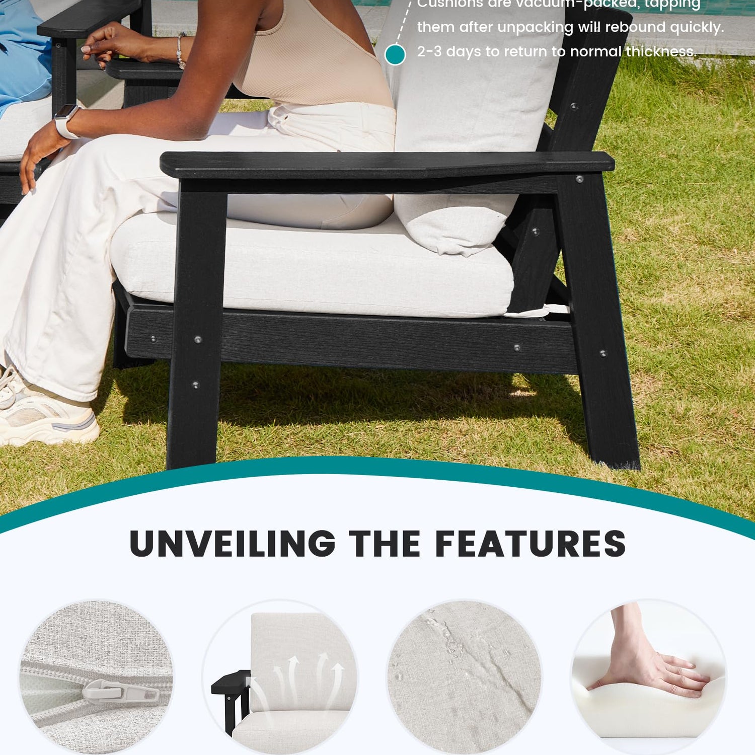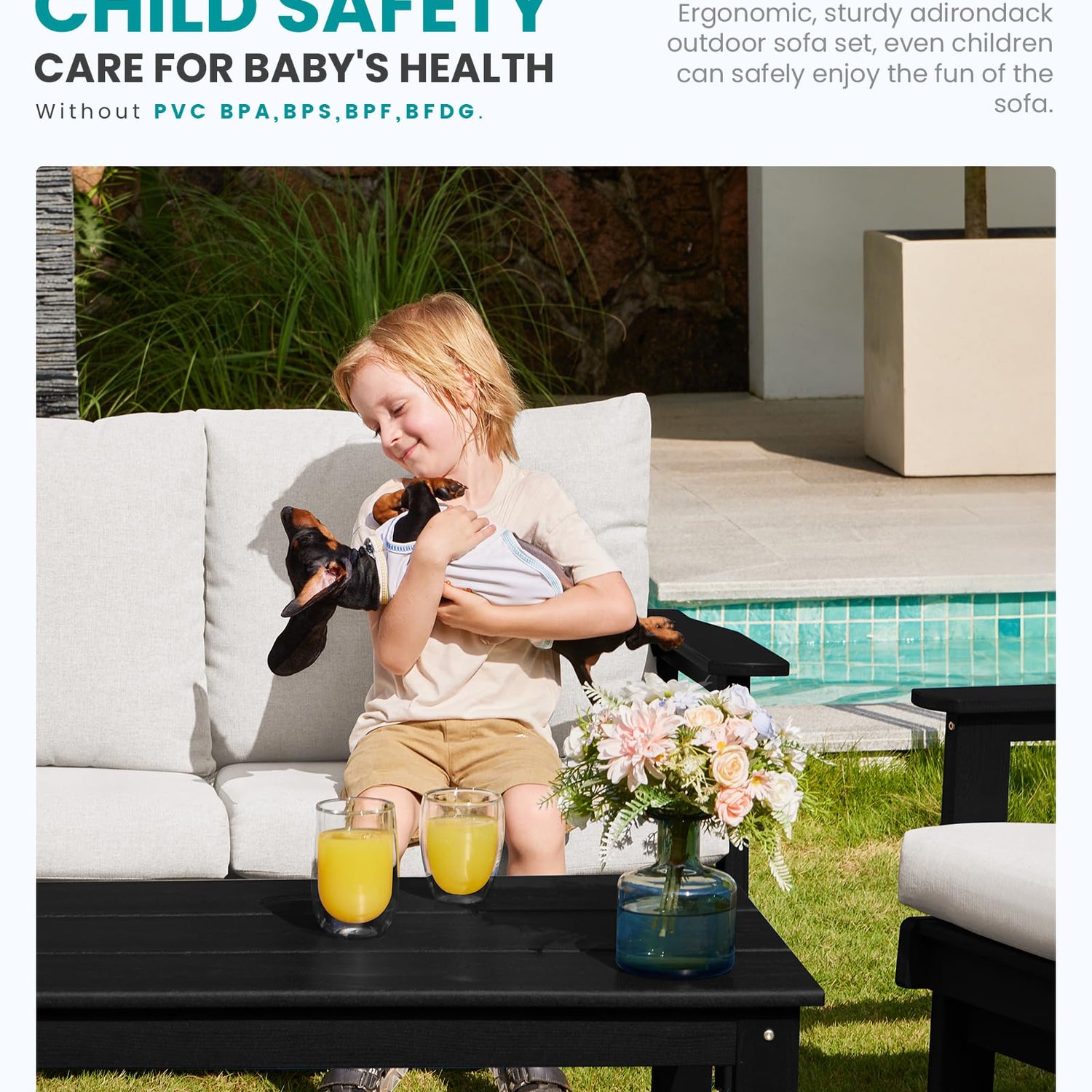 - Superior Weight-bearing: HDPE material makes the outdoor couch with solidly constructed, single seat holds 350 lbs, loveseat holds 660 lbs, coffee table holds 220 lbs. These adirondack chairs can be used safely and reliably by people of all shapes and sizes, whether you're enjoying your time alone or sharing it with friends and family without any stress.