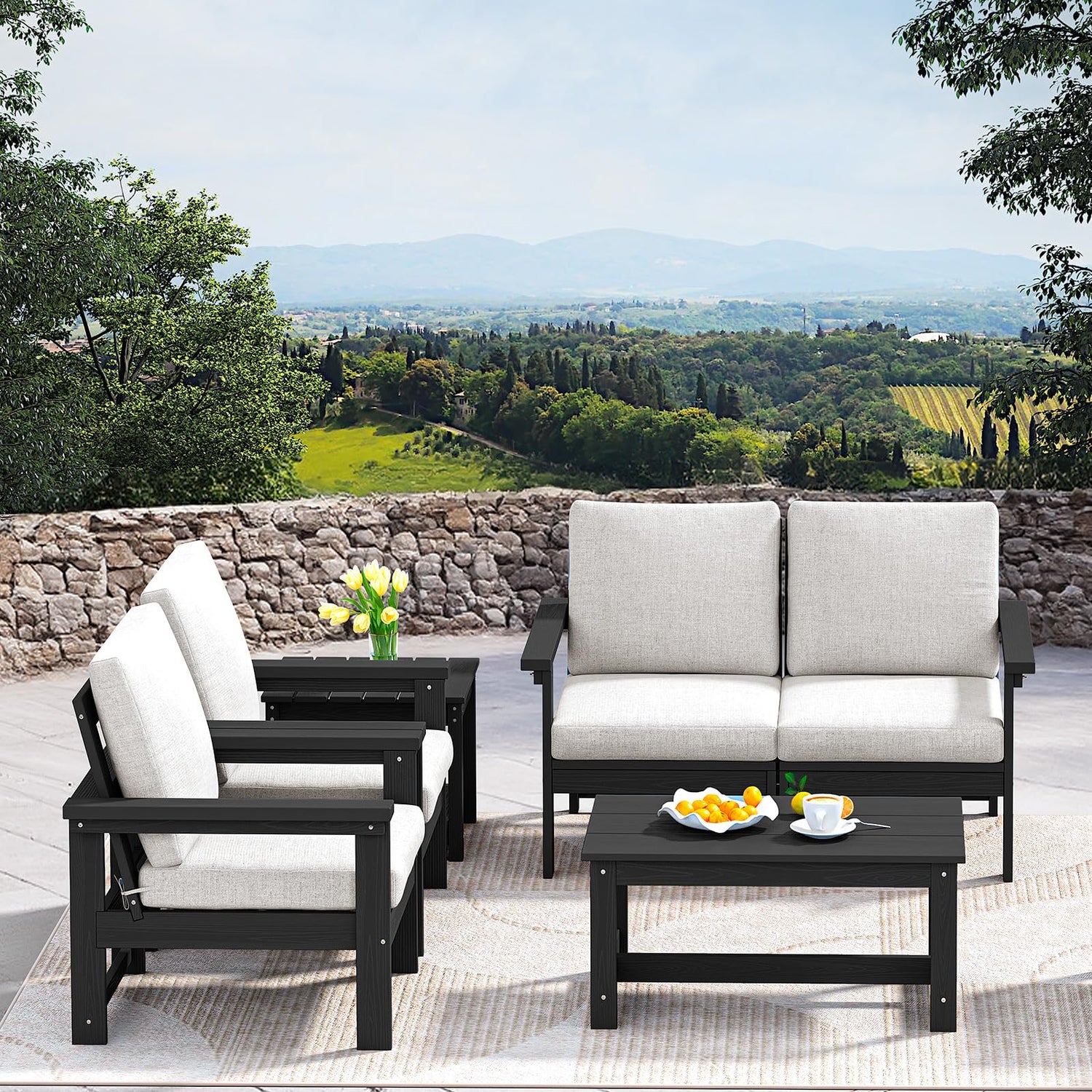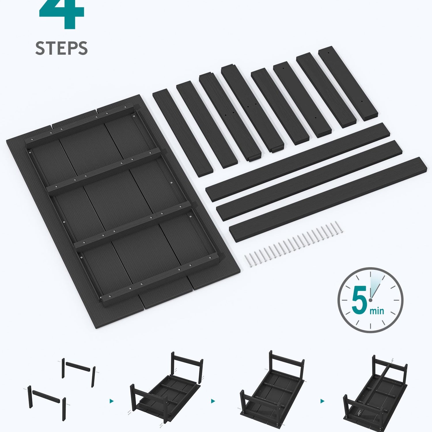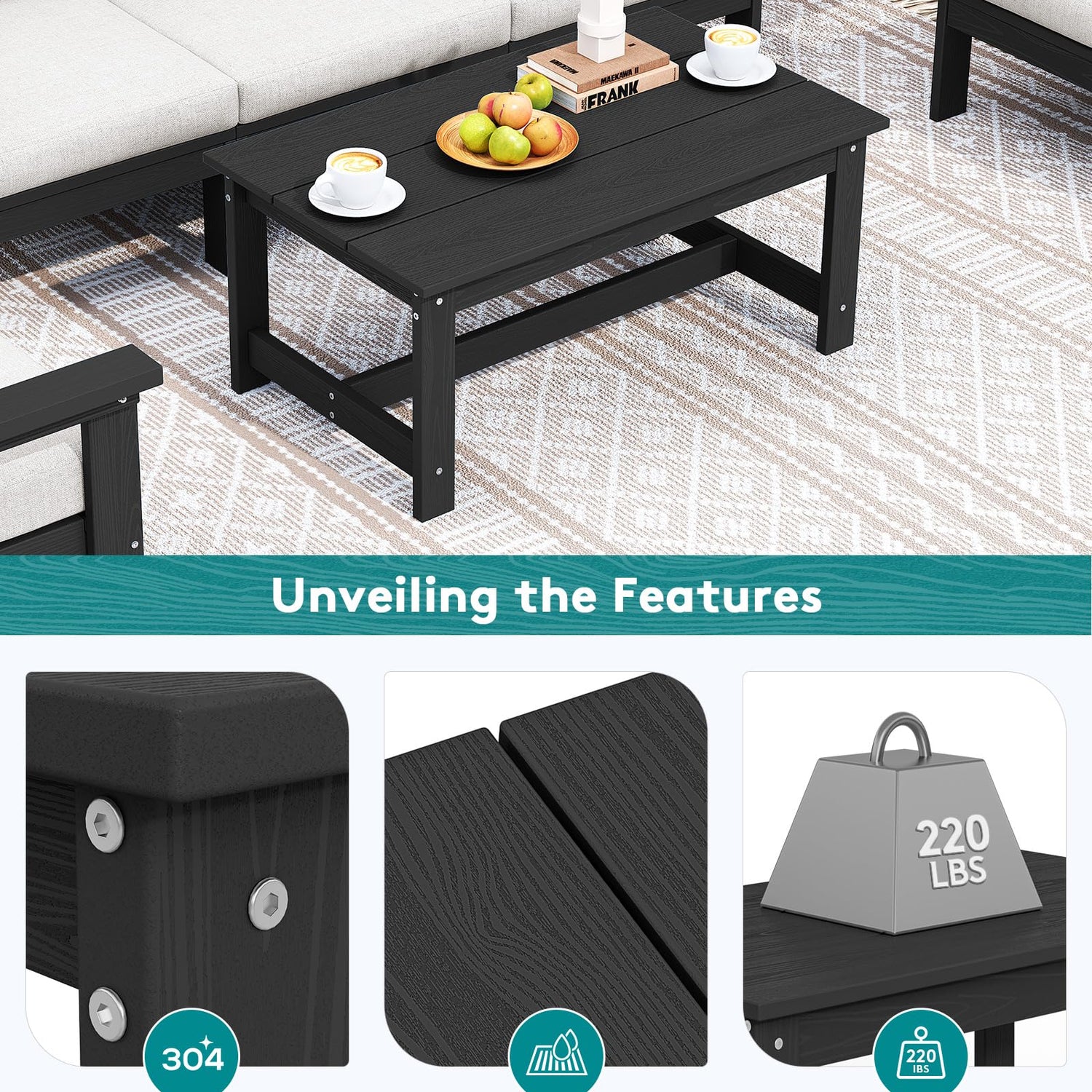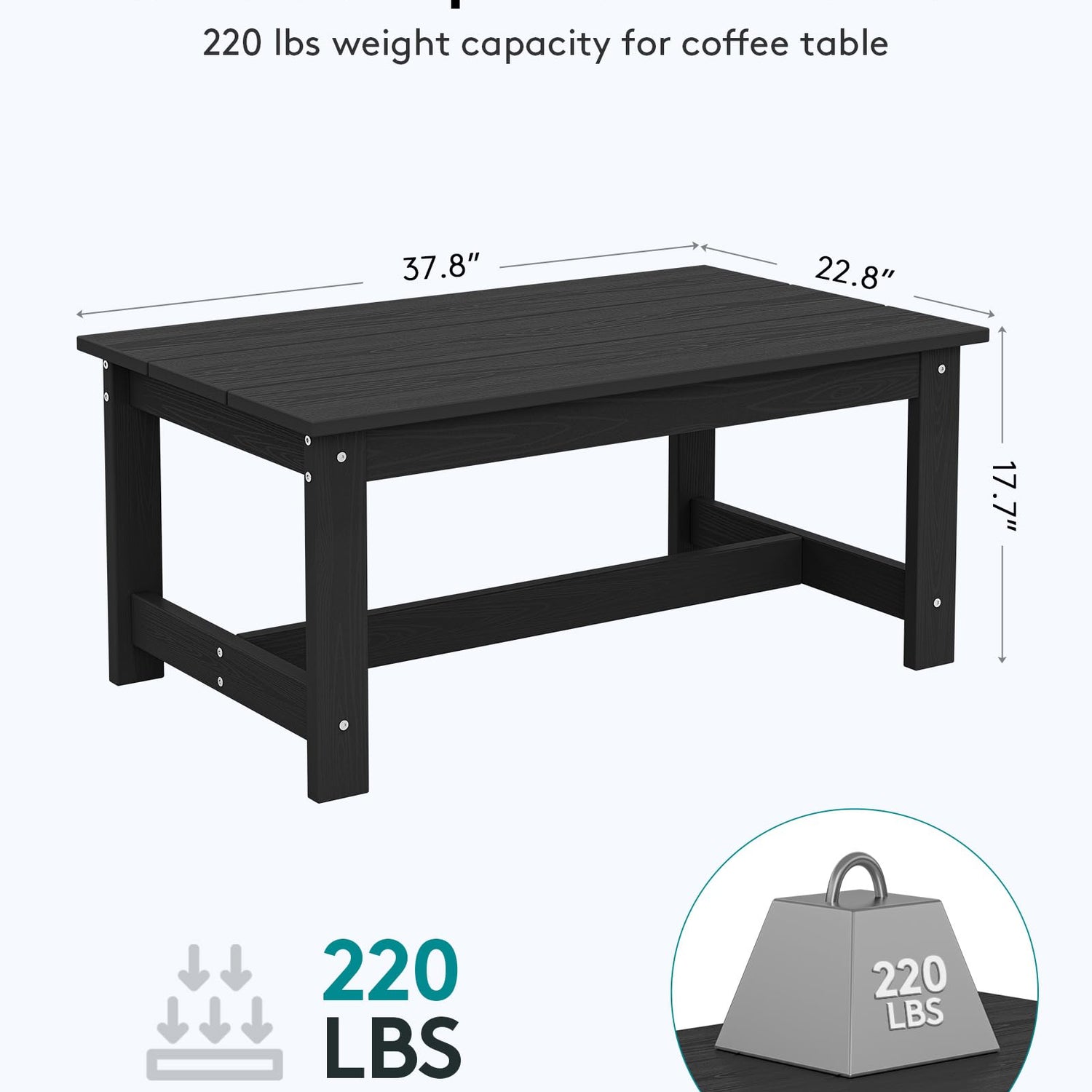 SERWALL HDPE Patio Coffee Table for Balcony, Deck, Black
