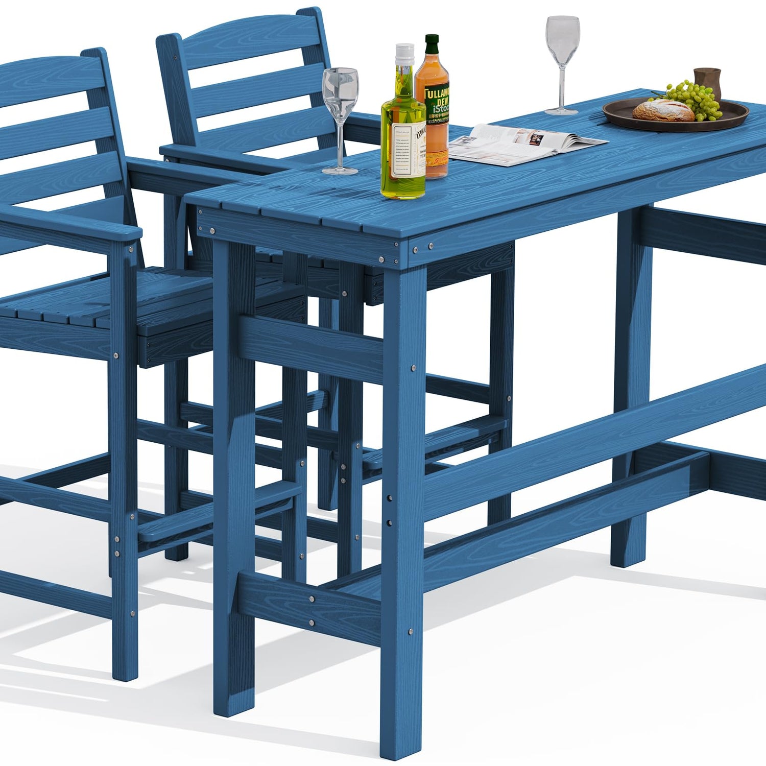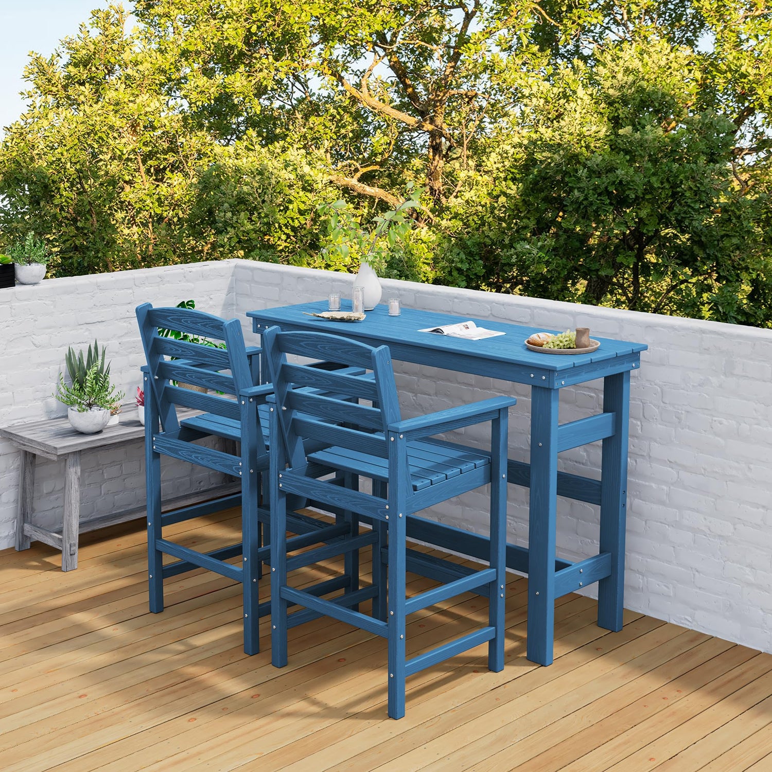 SERWALL Outdoor Bar Table and Chairs Set, Adirondack Bar Chairs Set of 2 and Bar Height Table, All Weather HDPE Outdoor Patio Bar Set, Outdoor Furniture for Outside, Poolside, Backyard, Garden, Blue
