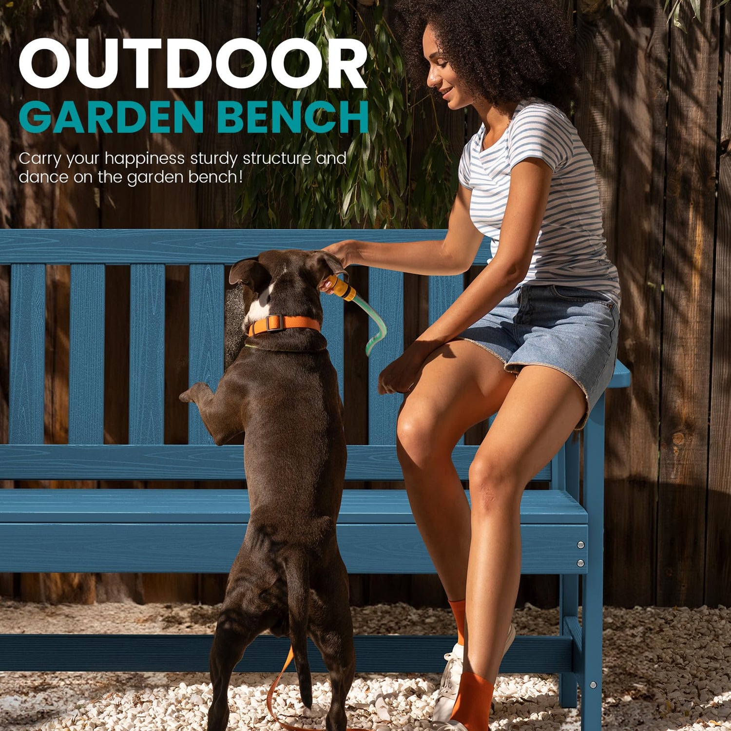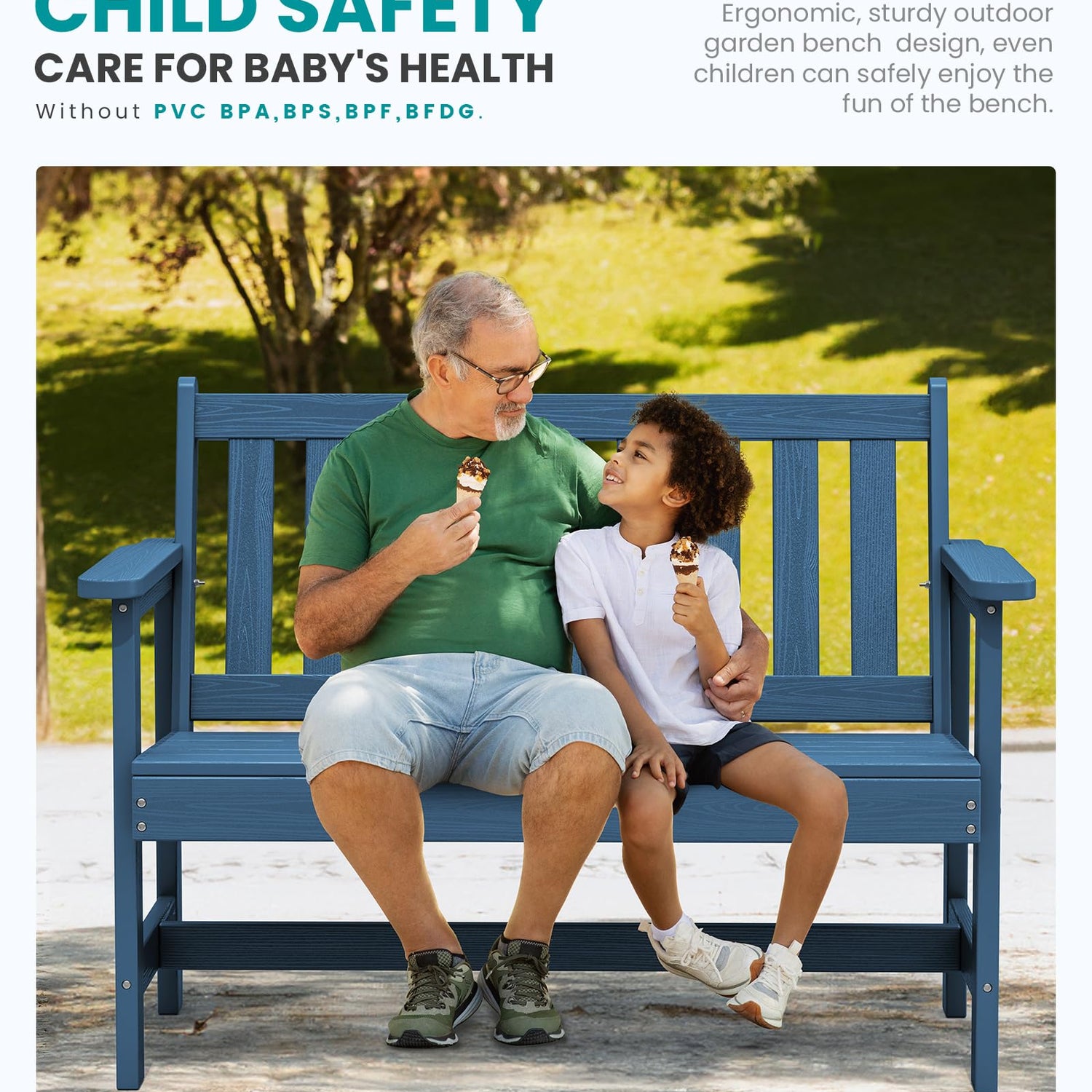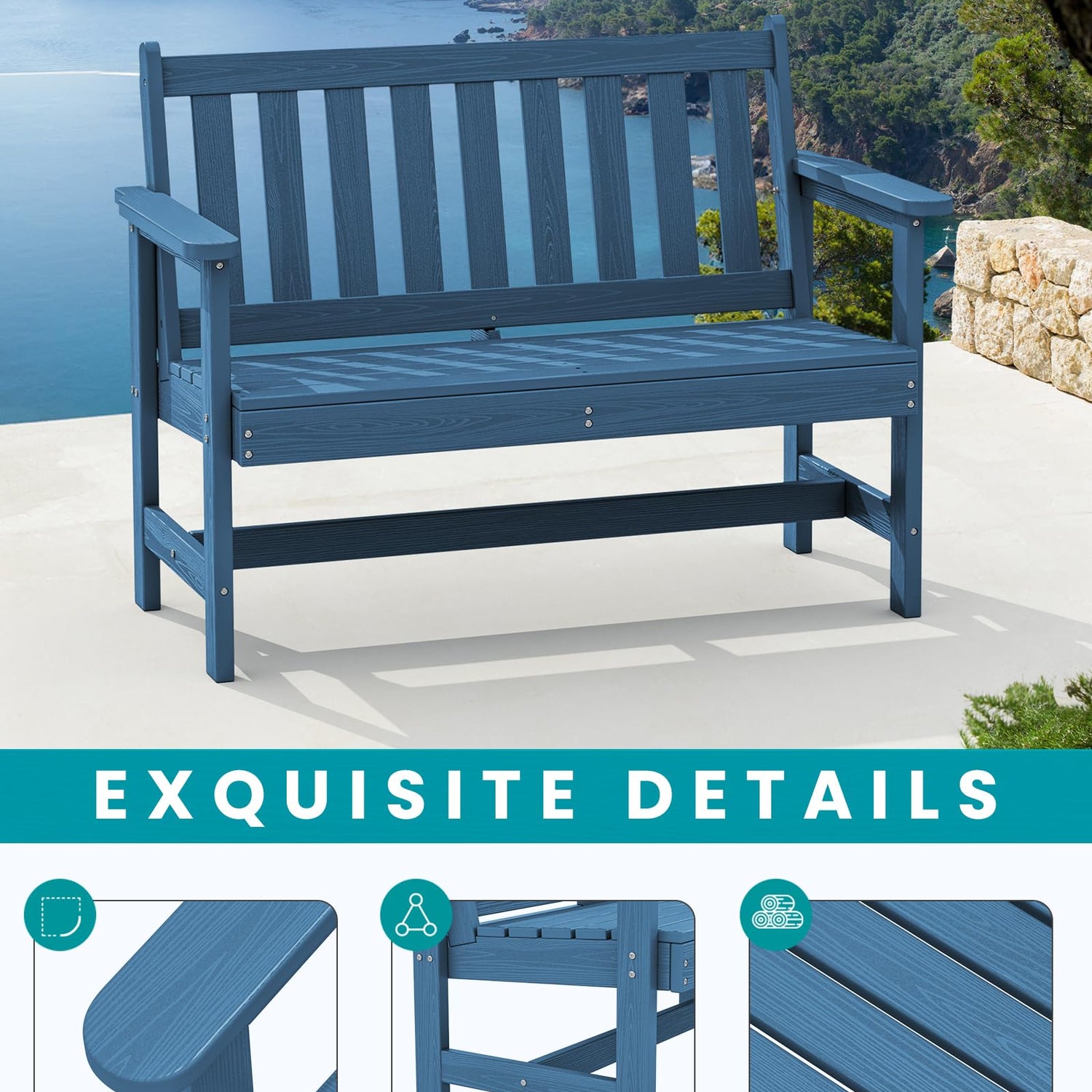 SERWALL Outdoor Bench, HDPE Outdoor Benches Weatherproof, 2-Person Garden Bench with 660 lbs Weight Capacity, Patio Benches for Outdoors, Garden, Porch, Backyard and Park, Navy Blue