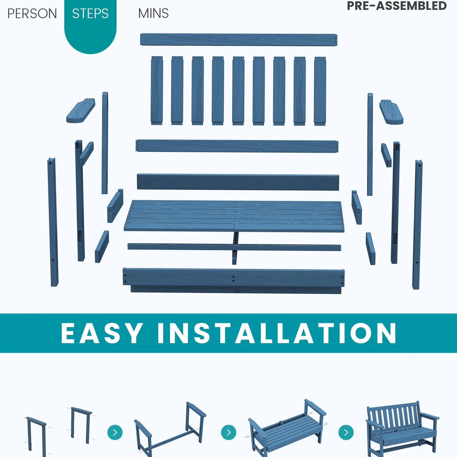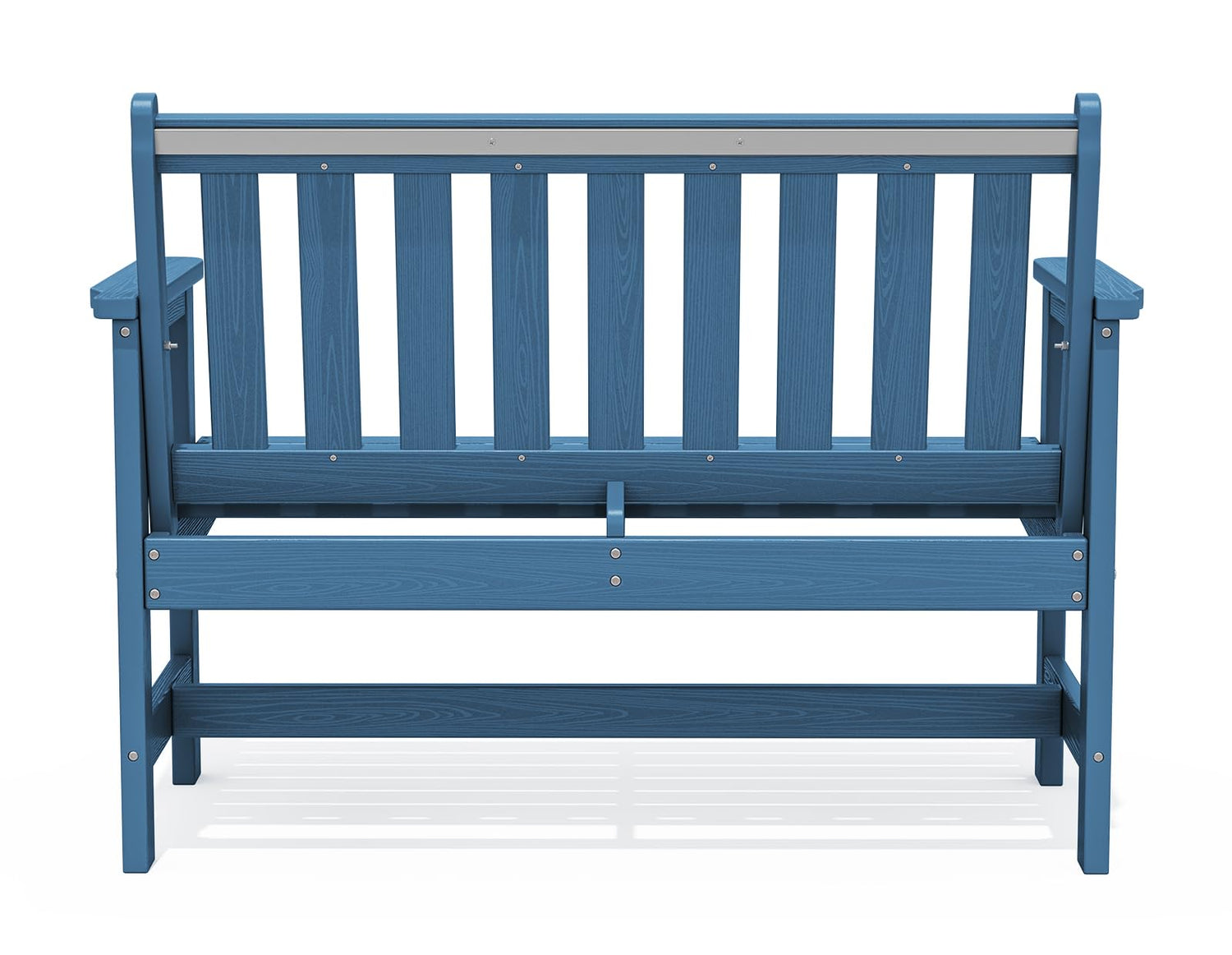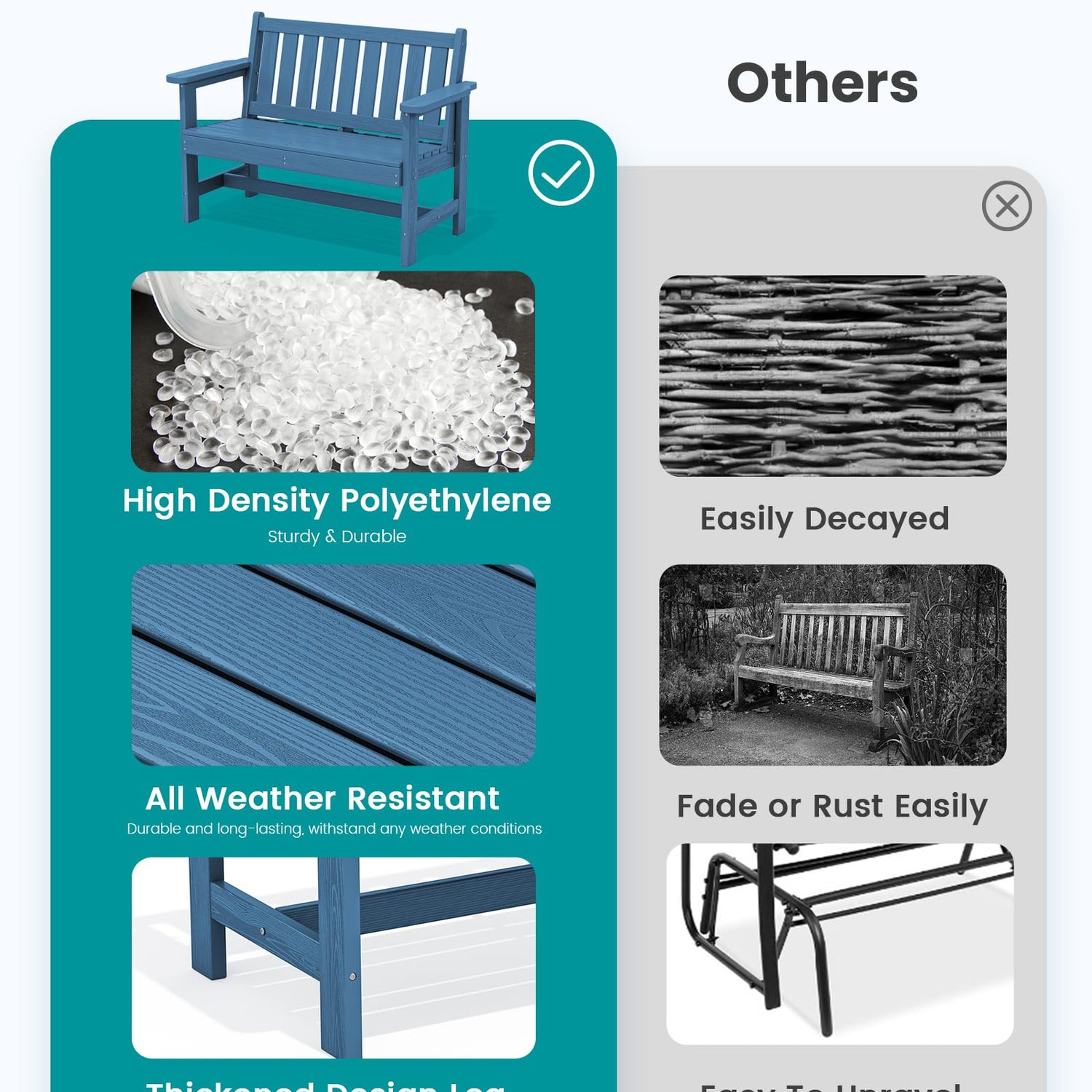 SERWALL Outdoor Bench, HDPE Outdoor Benches Weatherproof, 2-Person Garden Bench with 660 lbs Weight Capacity, Patio Benches for Outdoors, Garden, Porch, Backyard and Park, Navy Blue