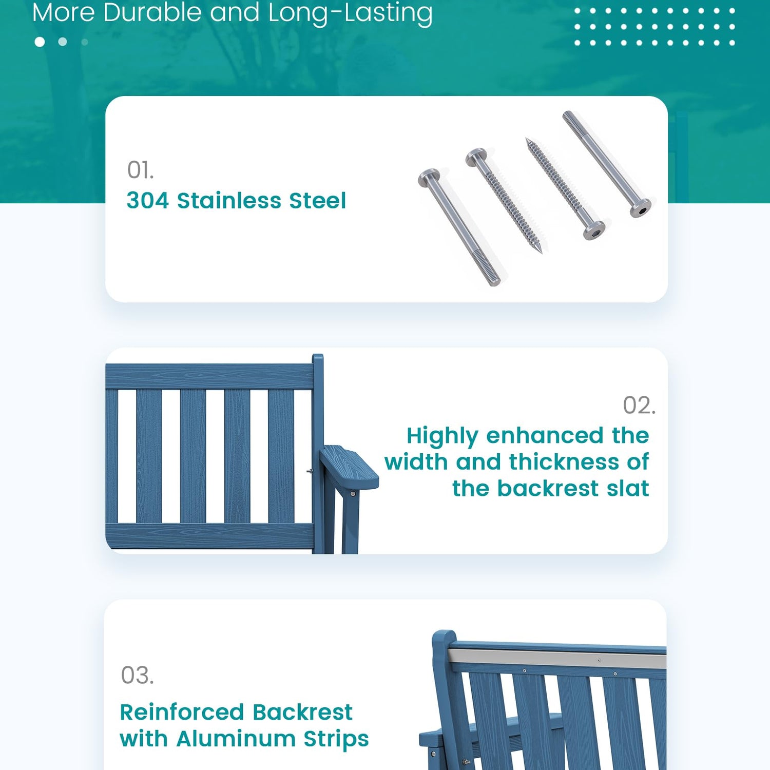 - High Weight Capacity: Tested to support up to 660 lbs, this outdoor bench is suitable for people of various body types and sizes. Its sturdy structure and premium materials ensure lasting performance.