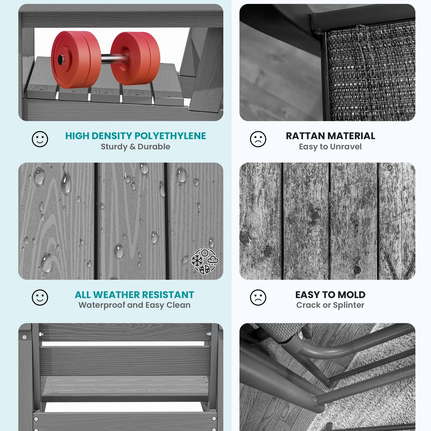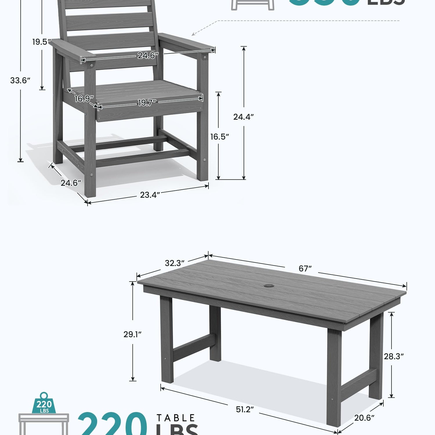 - 【Family-Friendly】HDPE patio dining table sets are family-friendly, providing a comfortable and safe space for outdoor meals and gatherings. Its rounded edge is safer than the steel material, making it ideal for families with children.