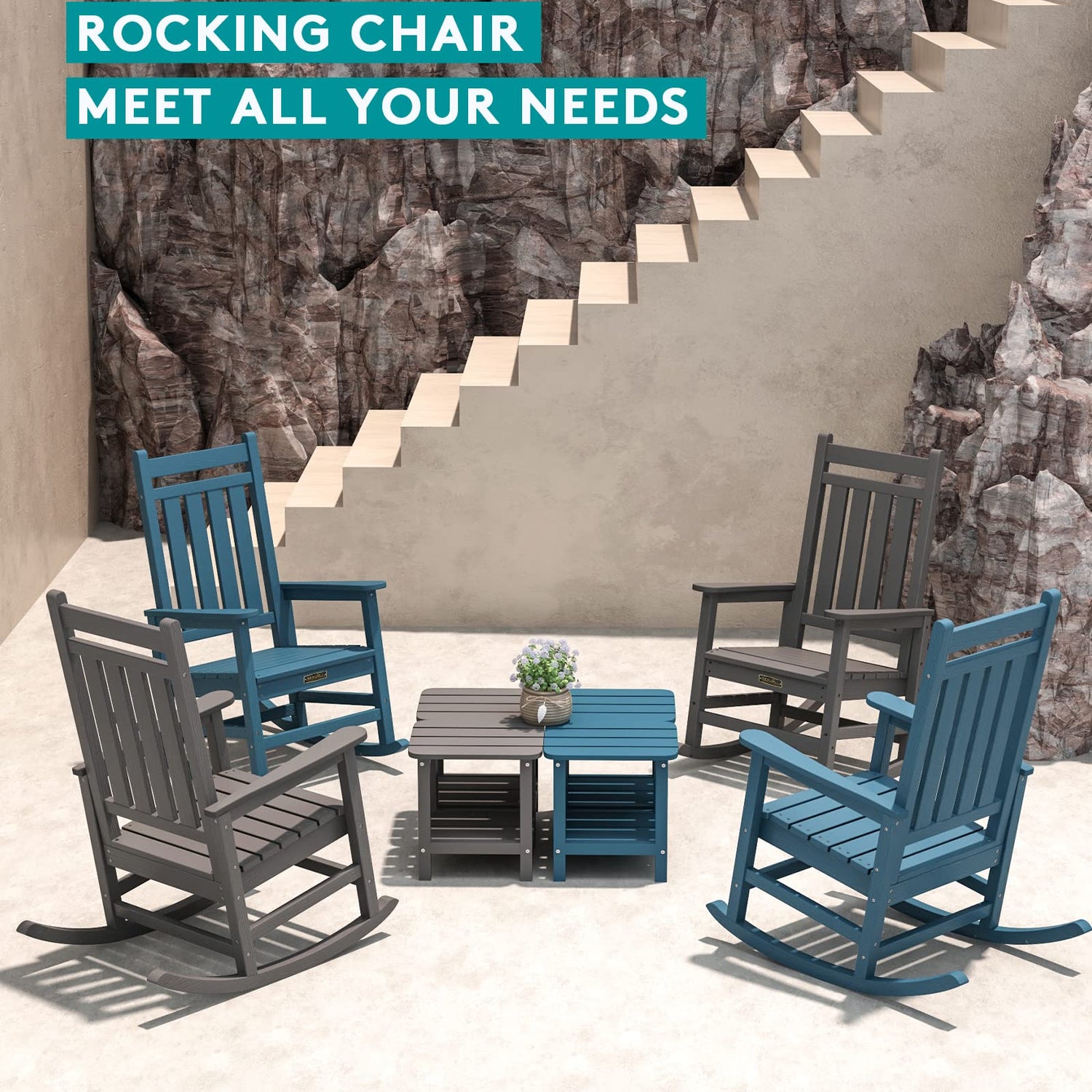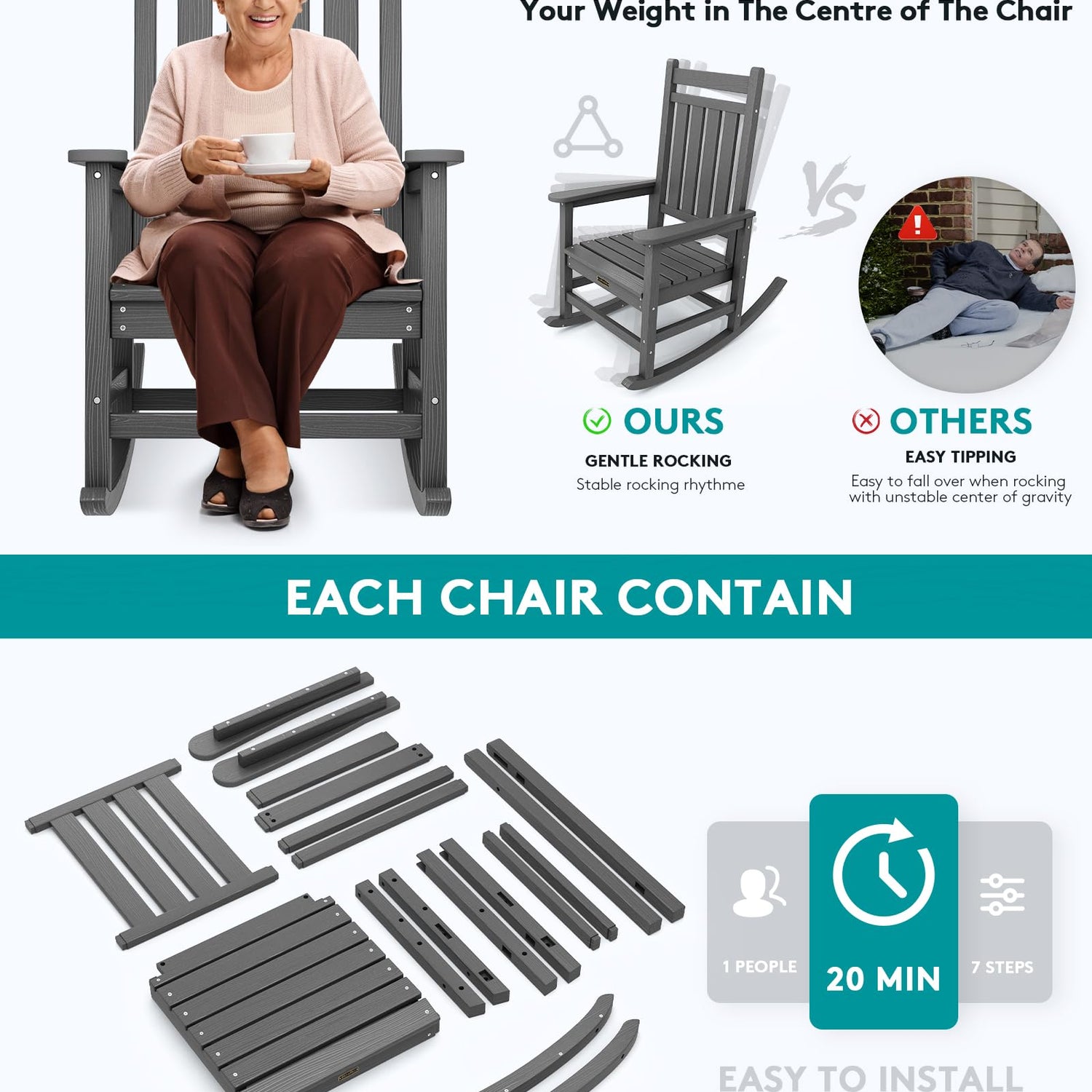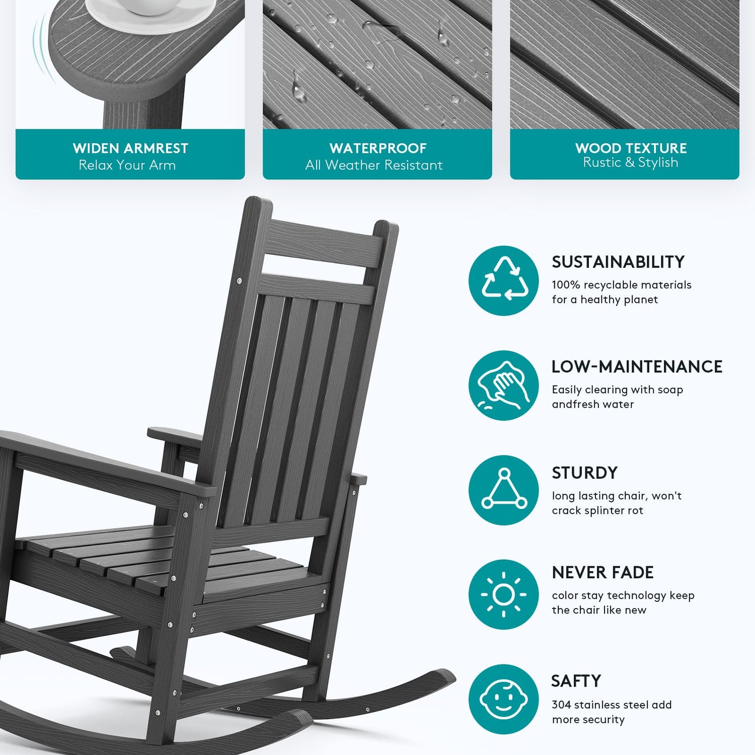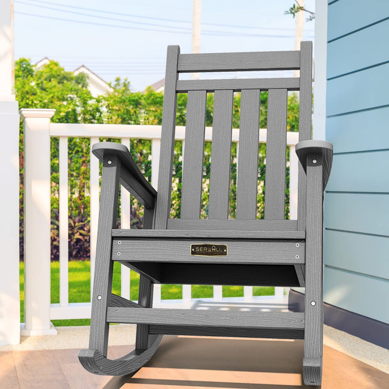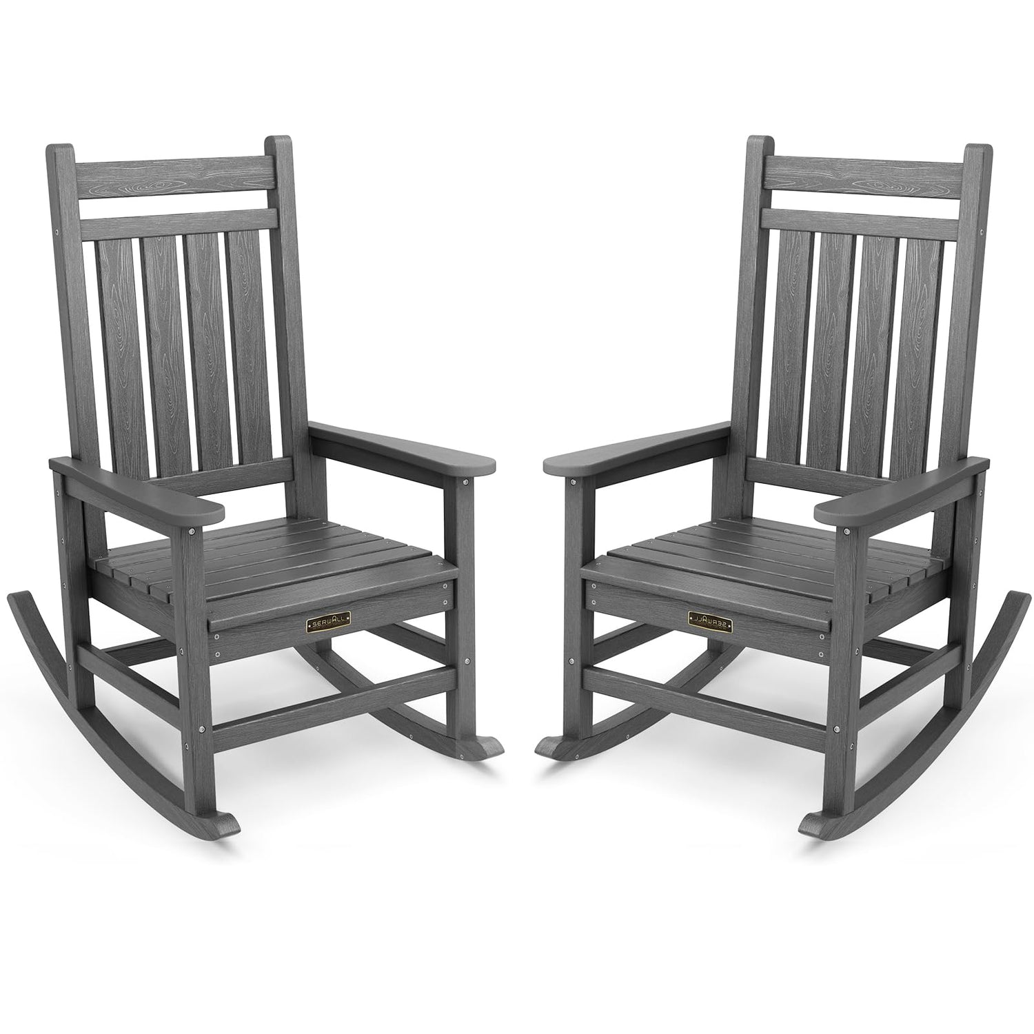 SERWALL Outdoor Rocking Chair Set of 2, HDPE Rocking Chairs for Adult, All Weather Porch Rockers for Lawn Garden, Grey