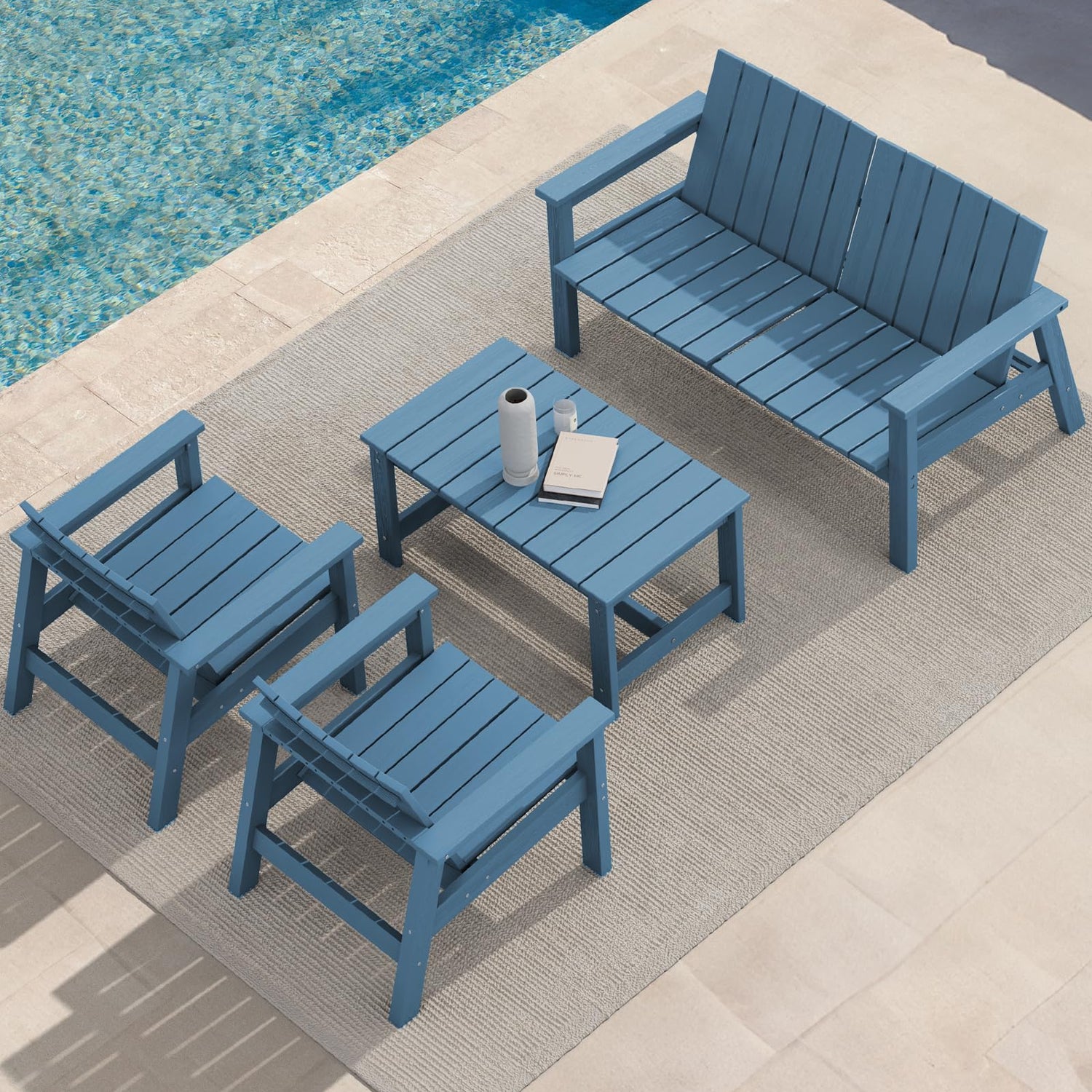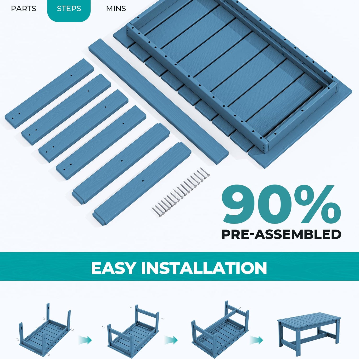 SERWALL Rectangle Outdoor Coffee Table, HDPE Patio Coffee Table, Navy