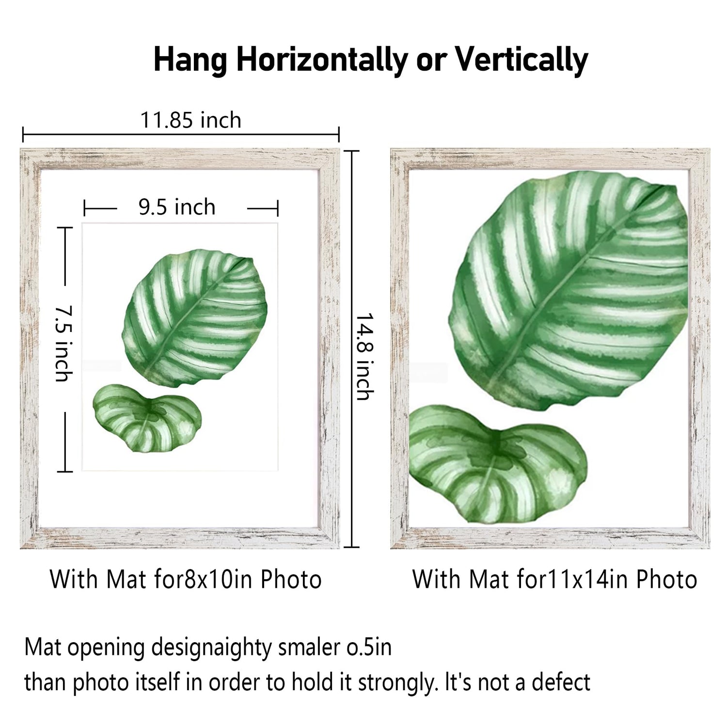 SESEAT 11x14 Picture Frame, Display Pictures 8x10 With mat or 11x14 Prints Without Mat, Wall Mounting, Distressed White, 6PCS