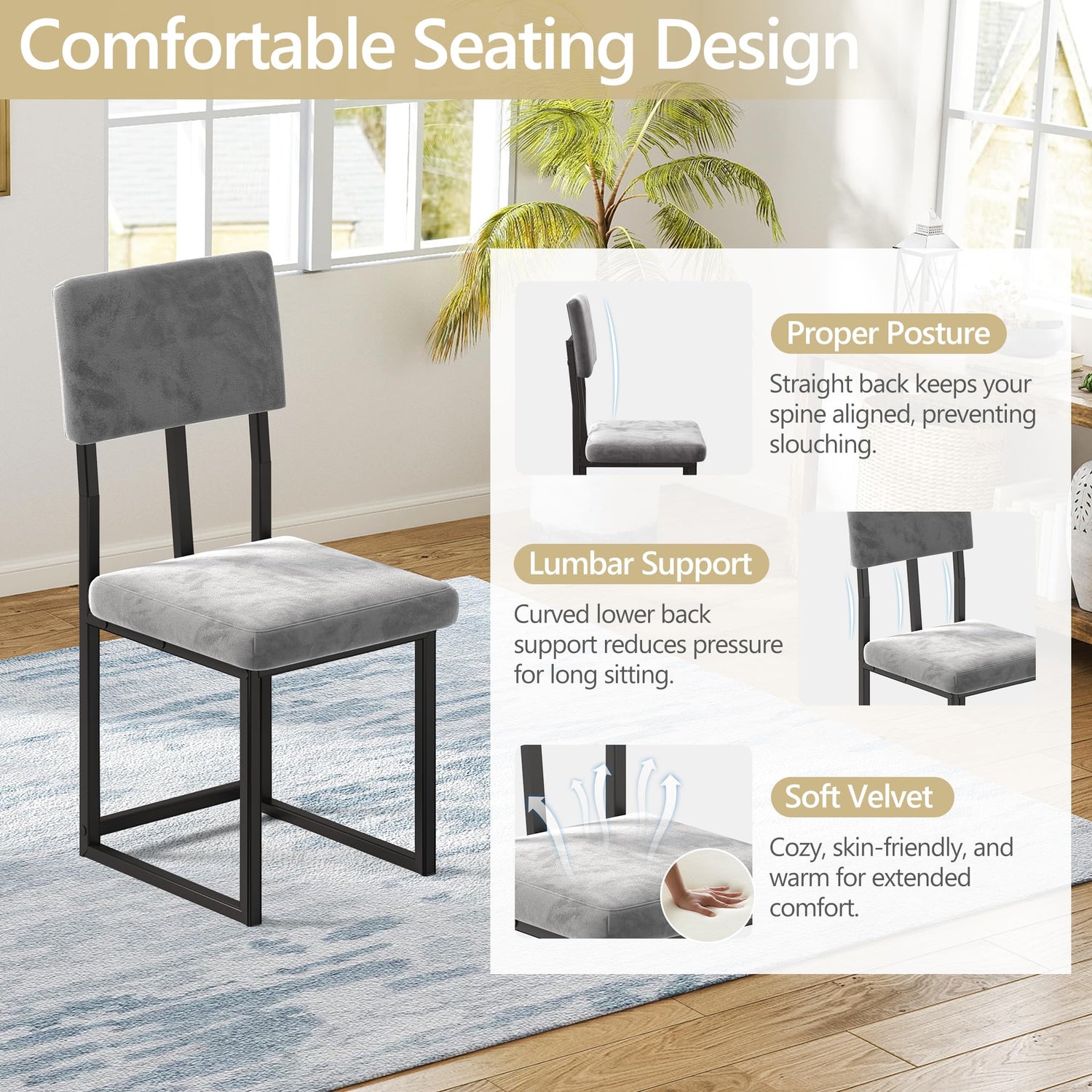 - Comfortable & Supportive Seating: Each chair in this table and chairs set of 4 features soft gray velvet upholstery with high-density foam padding. The ergonomic curved back supports your spine, making long meals, homework, or working from home comfortable.