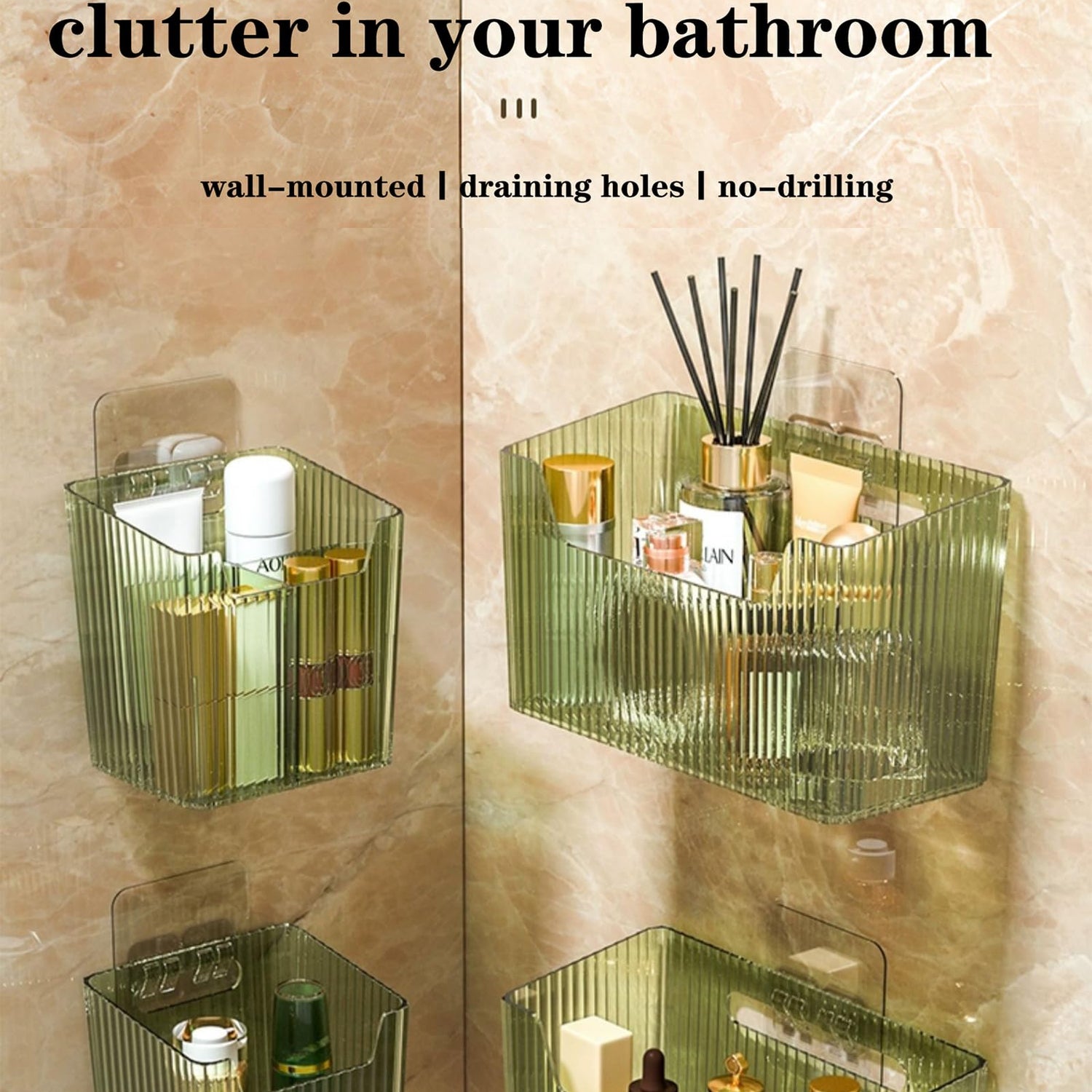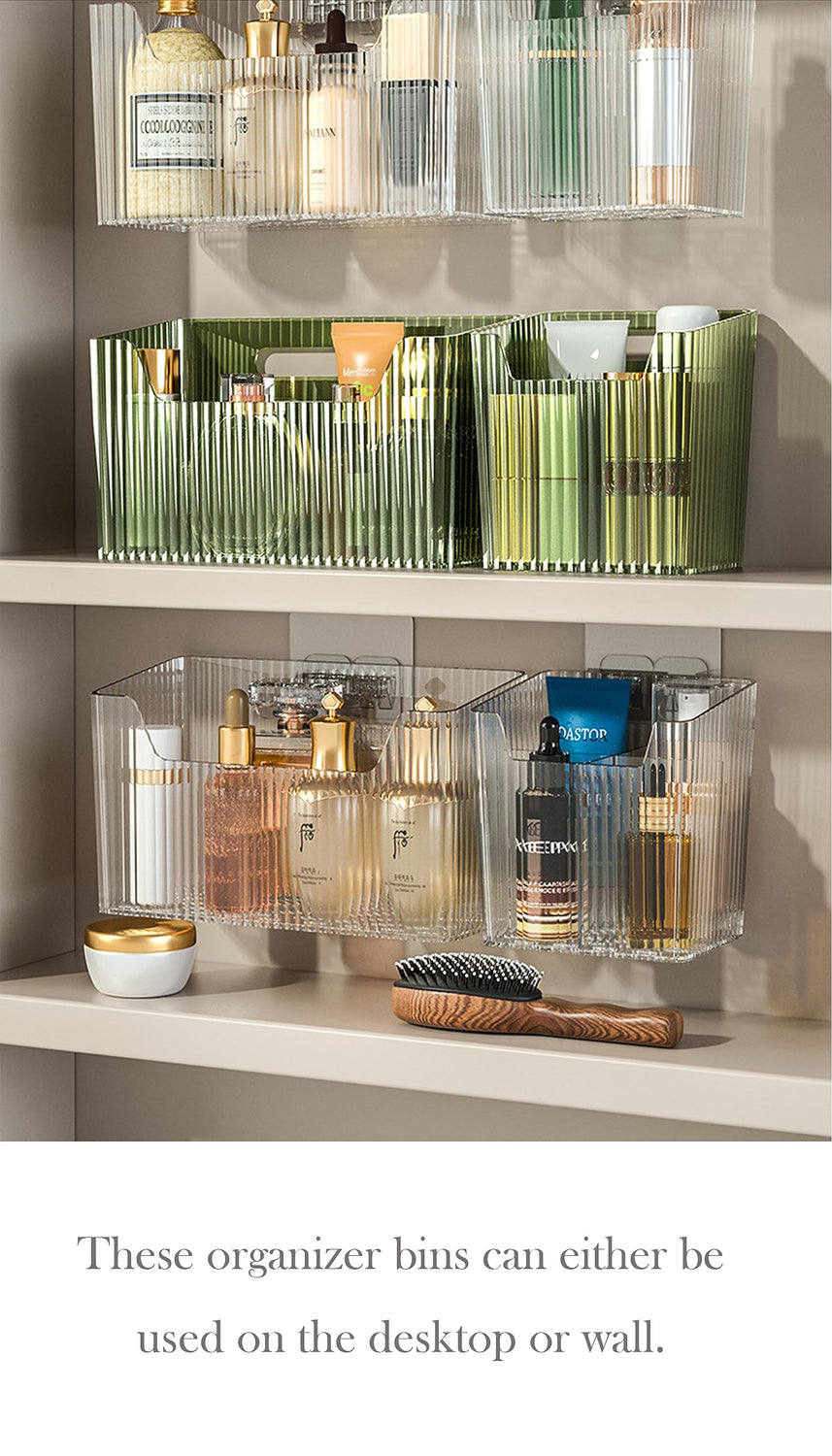 Set Of 2 Storage Organizer Bins Wall Mounted Organizer Basket, Shower Caddy Stackable Clear Plastic Makeup Organizer Adhesive Hanging Bin for Bathroom, Kitchen, Cabinet, Pantry, BPA Free, Large, Clear