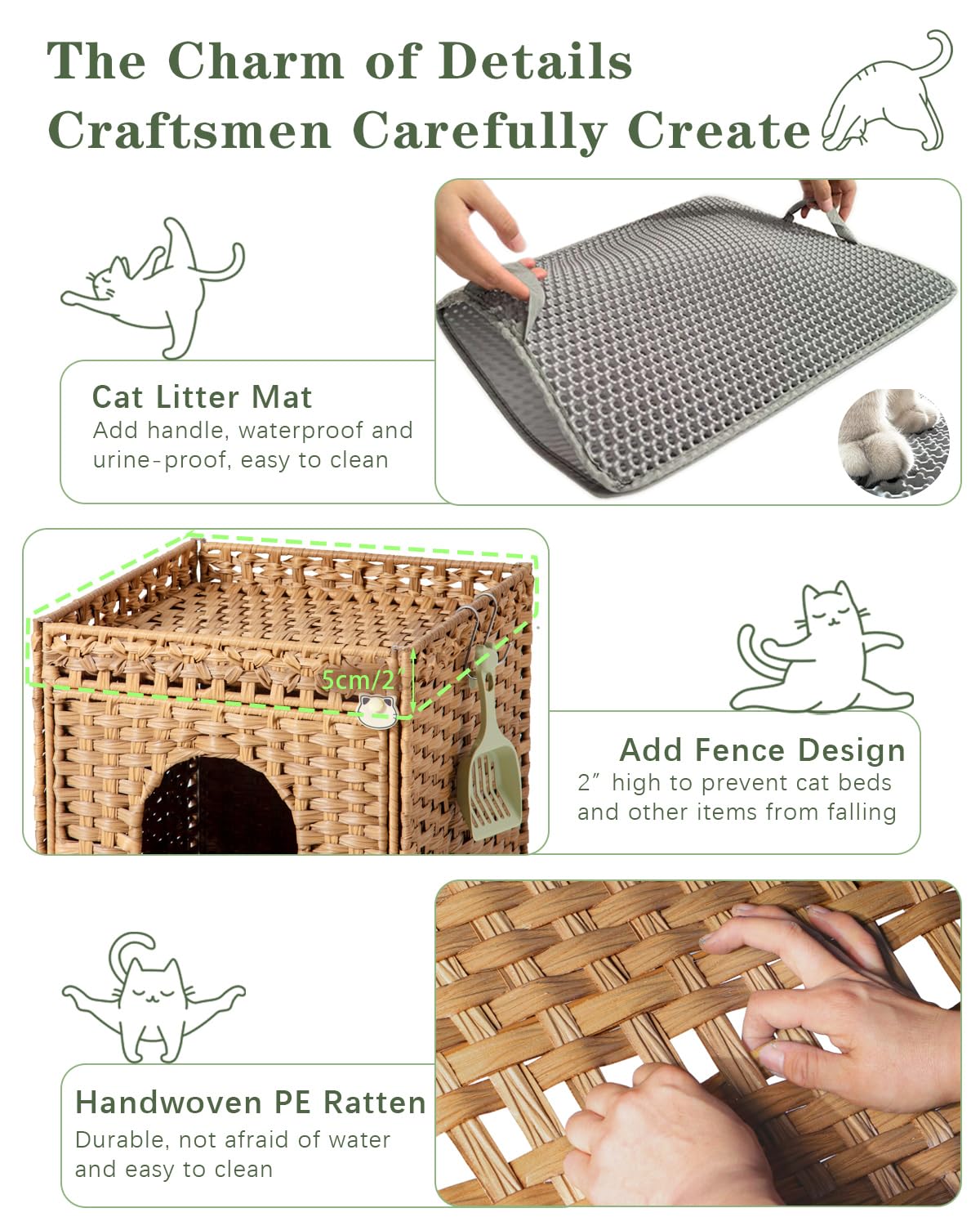 - More comfortable: Cat litter box hidden is hand-woven from odorless rattan material, cat litter furniture hidden adds a touch of rustic elegance to your home and cat hidden litter box is durable and commendable, ensuring a safe haven for your pets