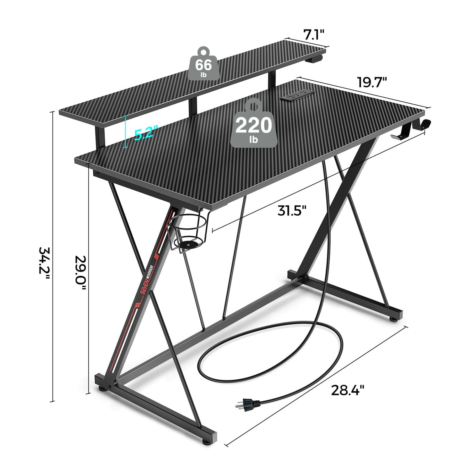 - Ample Gaming Desktop & Leg Room: The gaming desk is designed to fit your gaming gears. 31.5" x 19.7" desk surface,will provide enough space for your dual monitors and mechanical keyboard. Height of 29" fits well your needs