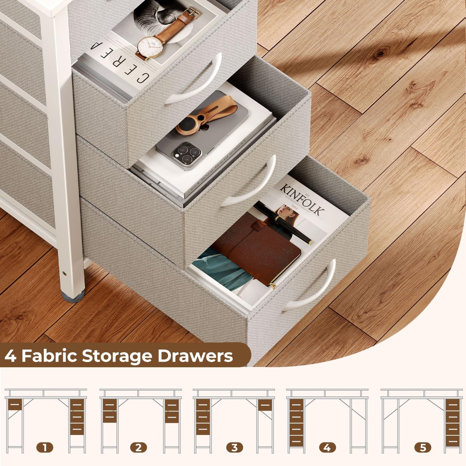 - Desk with 4 Drawers & Open Shelves - Equipped with 4 removable fabric drawers and sturdy two-tier storage shelves, this desk maximizes home office space. The drawers can be adjusted according to your needs, while the shelves offer ample storage for books, magazines, devices, and documents, ensuring a well-organized workspace