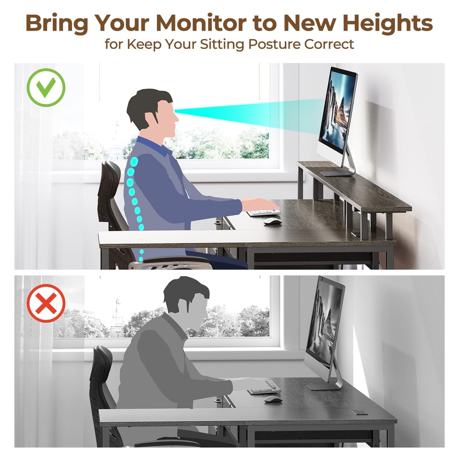 - Convenient Charging & Monitor Stand: The desk is equipped with two power outlets, two USB ports, and one Type-C port, providing extra power support for all your necessary tech devices. Reduce neck strain with the elevated monitor stand that promotes healthy sitting posture