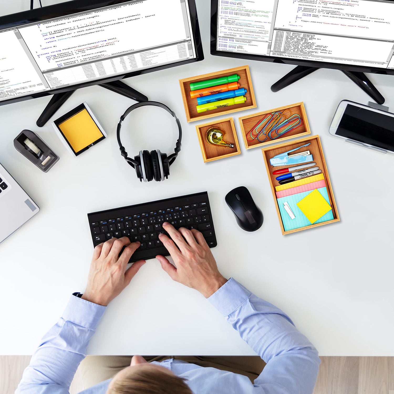 - Includes 5 bamboo organizer boxes in a variety of sizes for organization that fits your life exactly the way you want it